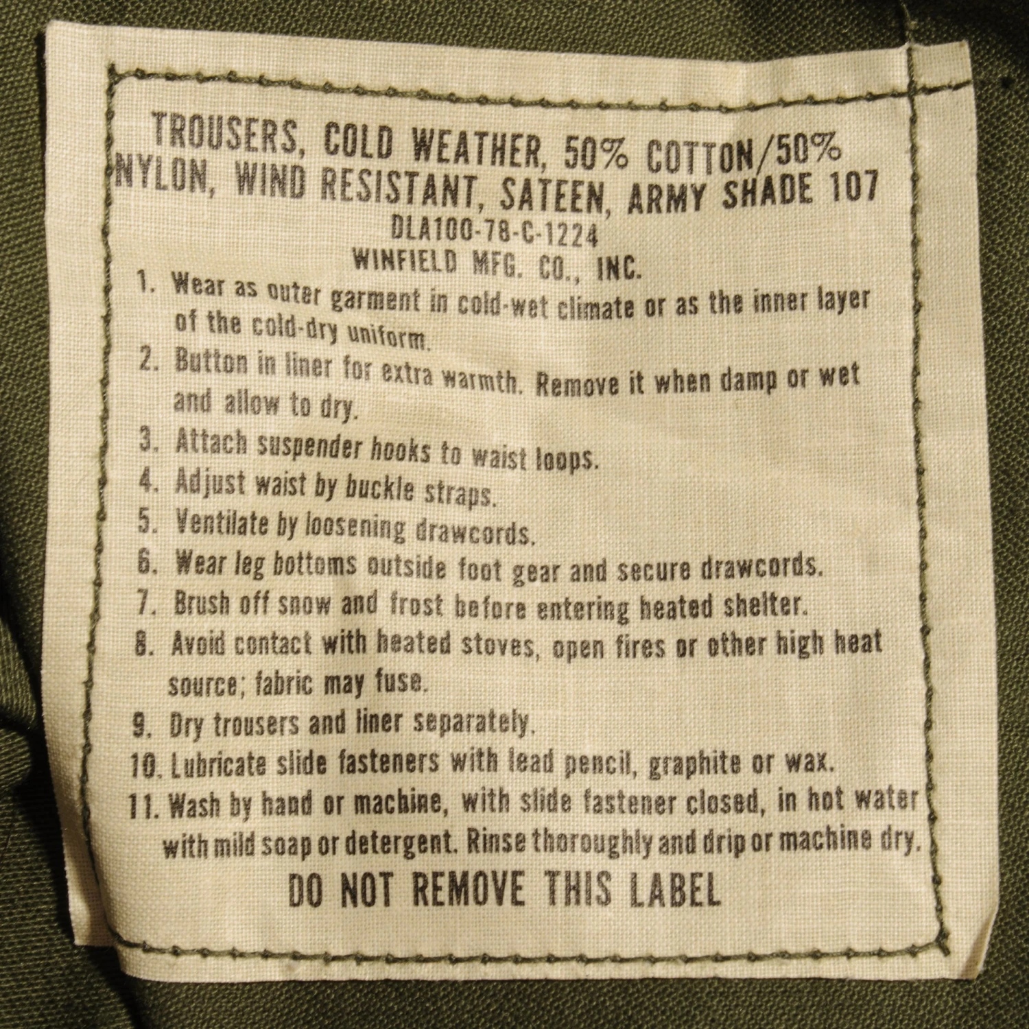 Vintage US Army Field Trousers Pants Cold Weather 1978 Size Medium Long.