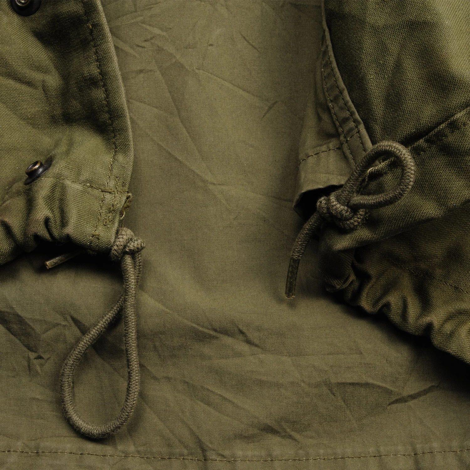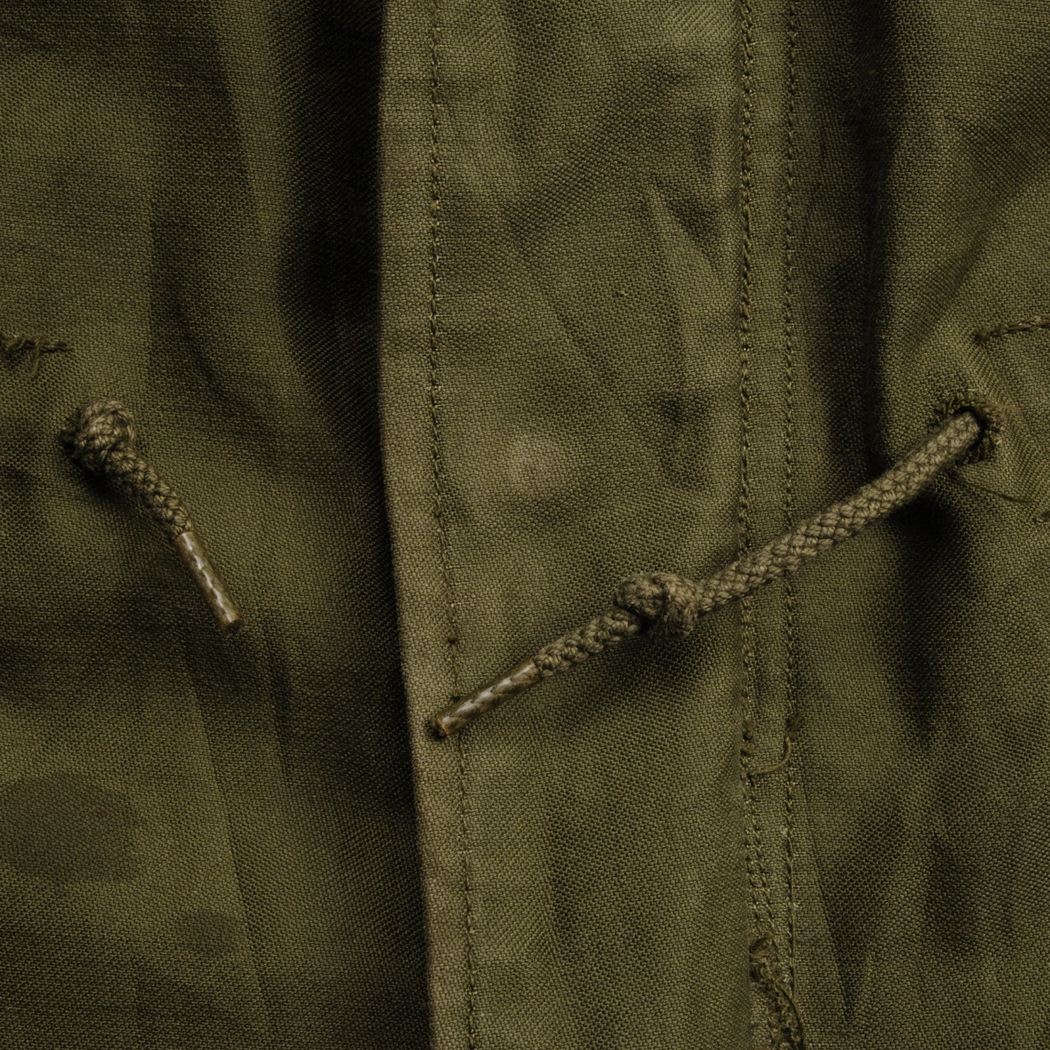 Developed for the Korean War, the M1951 field coat was made from OG-107 water repellent and wind resistant sateen and had a zip front closure and summary cuffs. It had both waist and hem drawstrings and in cold weather could be fitted with a detachable liner. A hood could be summaryed to the coat’s epaulets to provide protection against the elements for both head and face. Though they were rarely needed in Vietnam, field coats were worn in the Central Highlands where it became rather cold at night.