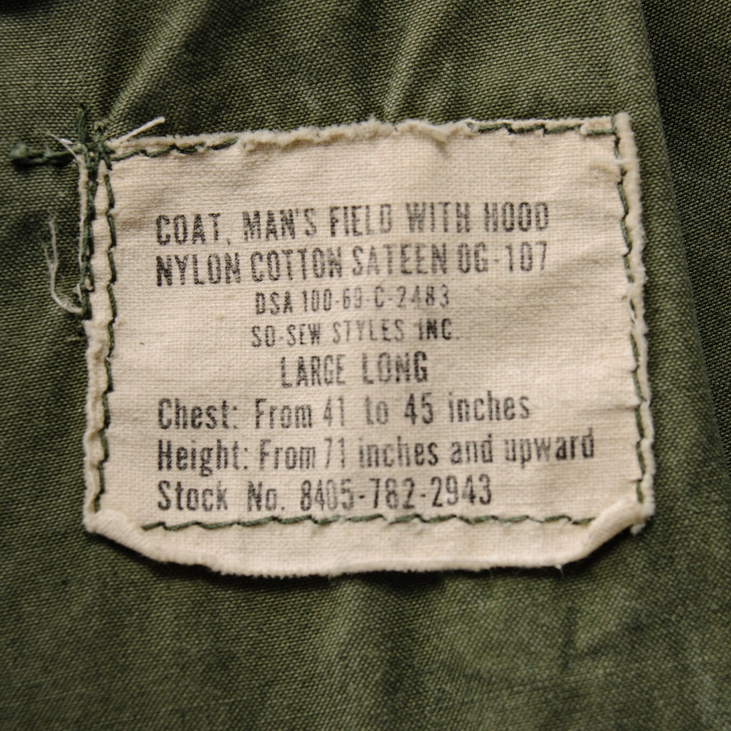 US ARMY M-1965 M65 FIELD JACKET 1969 VIETNAM WAR SIZE LARGE LONG(Us Army M 1965 M65 Field Jacket 1969 Vietnam War Large Long)