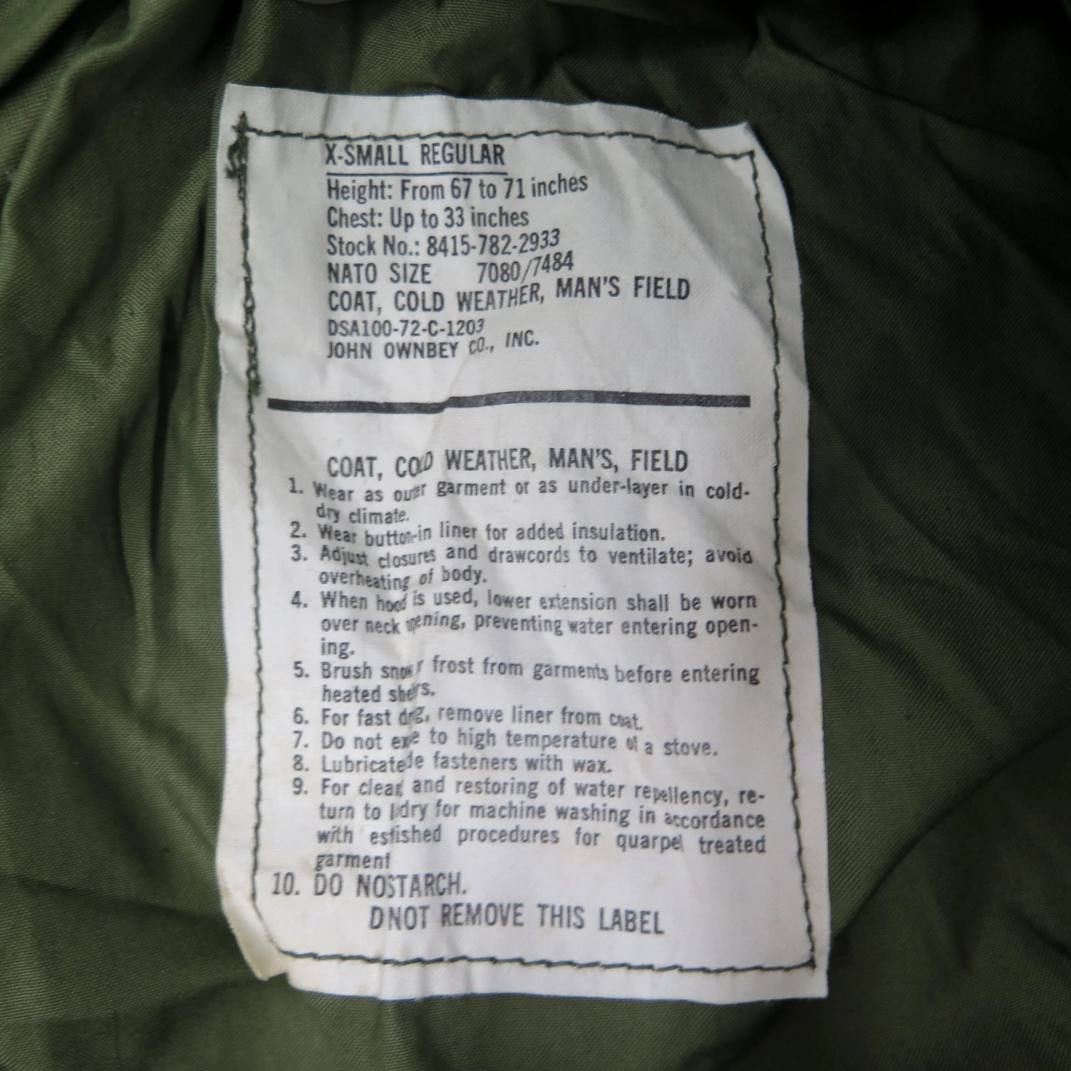 US ARMY M-1965 M65 FIELD JACKET 1972 SIZE XS XSMALL REGULAR DEADSTOCK(Us Army 1972 M65 M 65 Field Jacket Xs Extra Small Regular Deadstock)