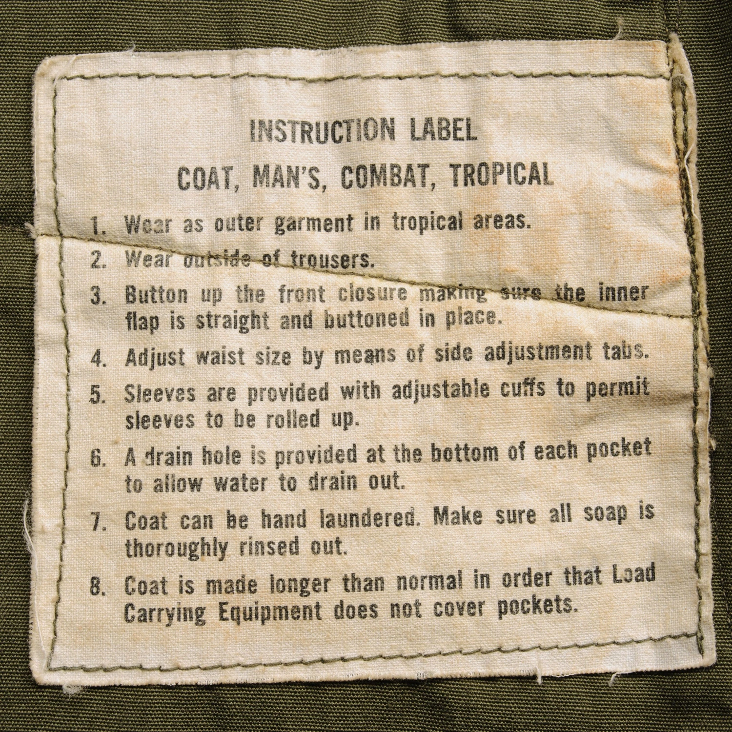 The Second Pattern of the Tropical Combat Coat was amended in January 1965. The new design concealed the summarys of all four cargo pockets behind flaps, which successfully alleviated the snagging problem that affected the original model. The spacing of the jungle jacket’s front summarys was also changed, with the 2nd pattern having only four summarys (excluding the collar summary), compared to the original’s five.1