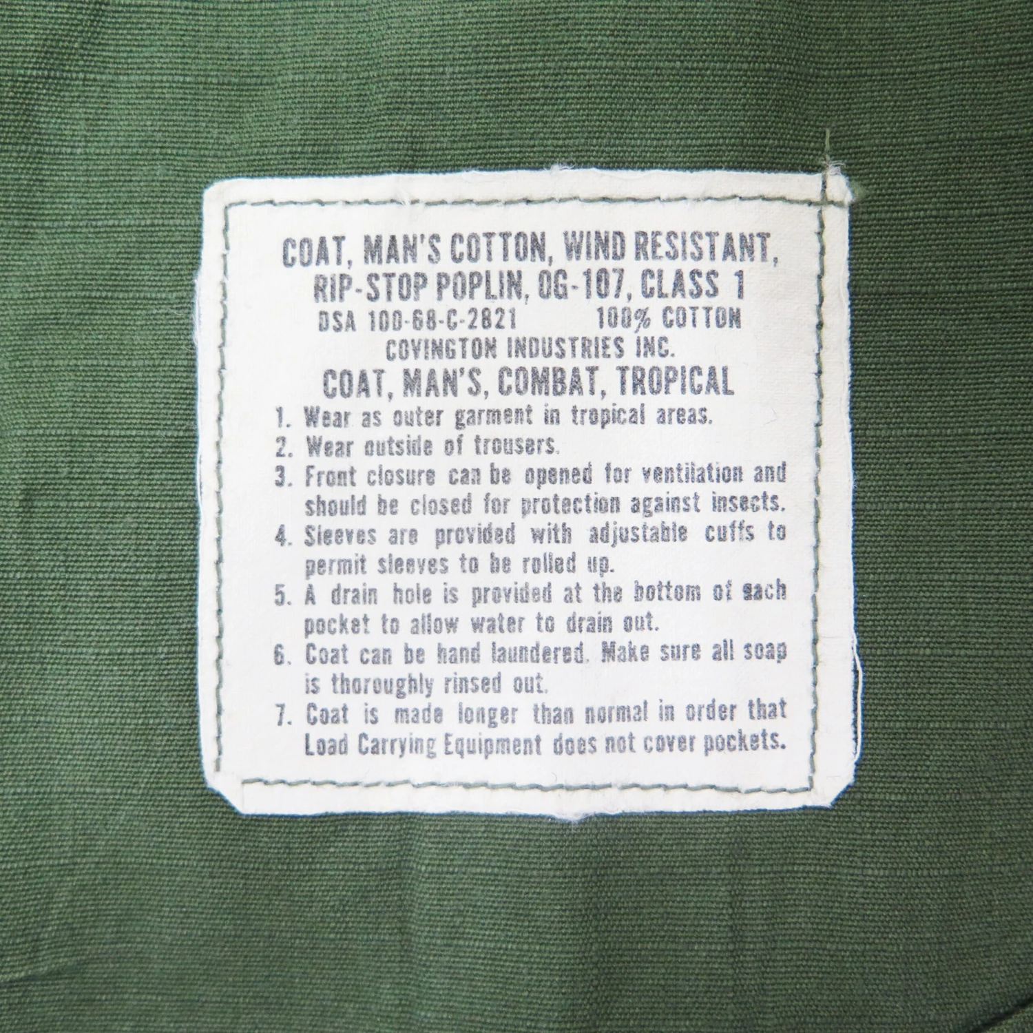 The 4th pattern Tropical Combat Coat was the first to be made from rip-stop cotton poplin. Like the 3rd model jungle jacket it had a back yoke and was produced in both OG-107 and ERDL camouflage. However, the new design had no hanger loop, only one pen pocket (located behind the left chest cargo pocket) and the pocket drain holes removed from the 3rd pattern jacket were reintroduced.