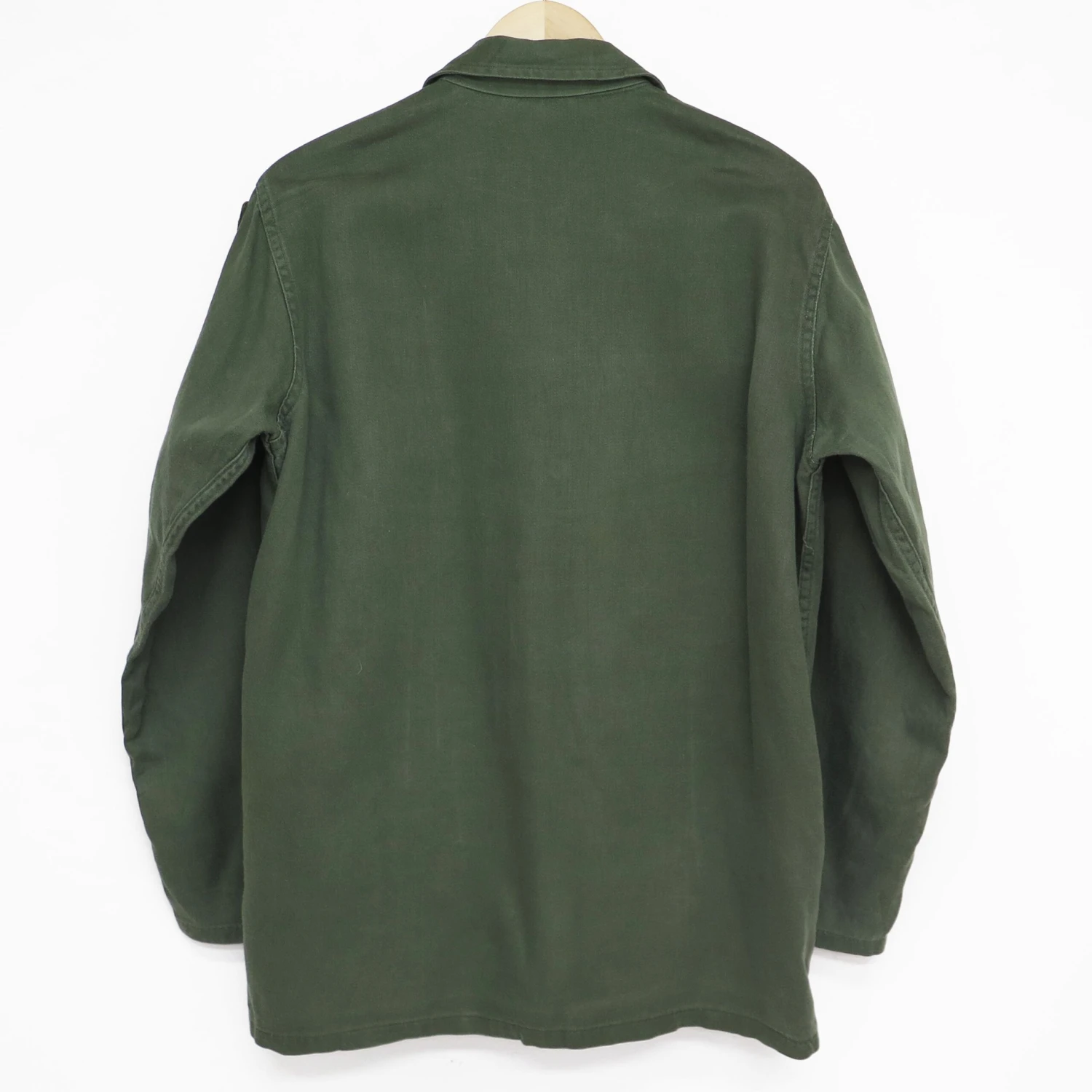 The Army’s first pattern utility shirt was standardized in 19581 and replaced the near identical utility jacket. It was made from olive green (OG-107) 8.5oz cotton sateen and boasted two patch pockets with straight cut flaps. The shirt also had an unusually low first summary and no summary cuffs.