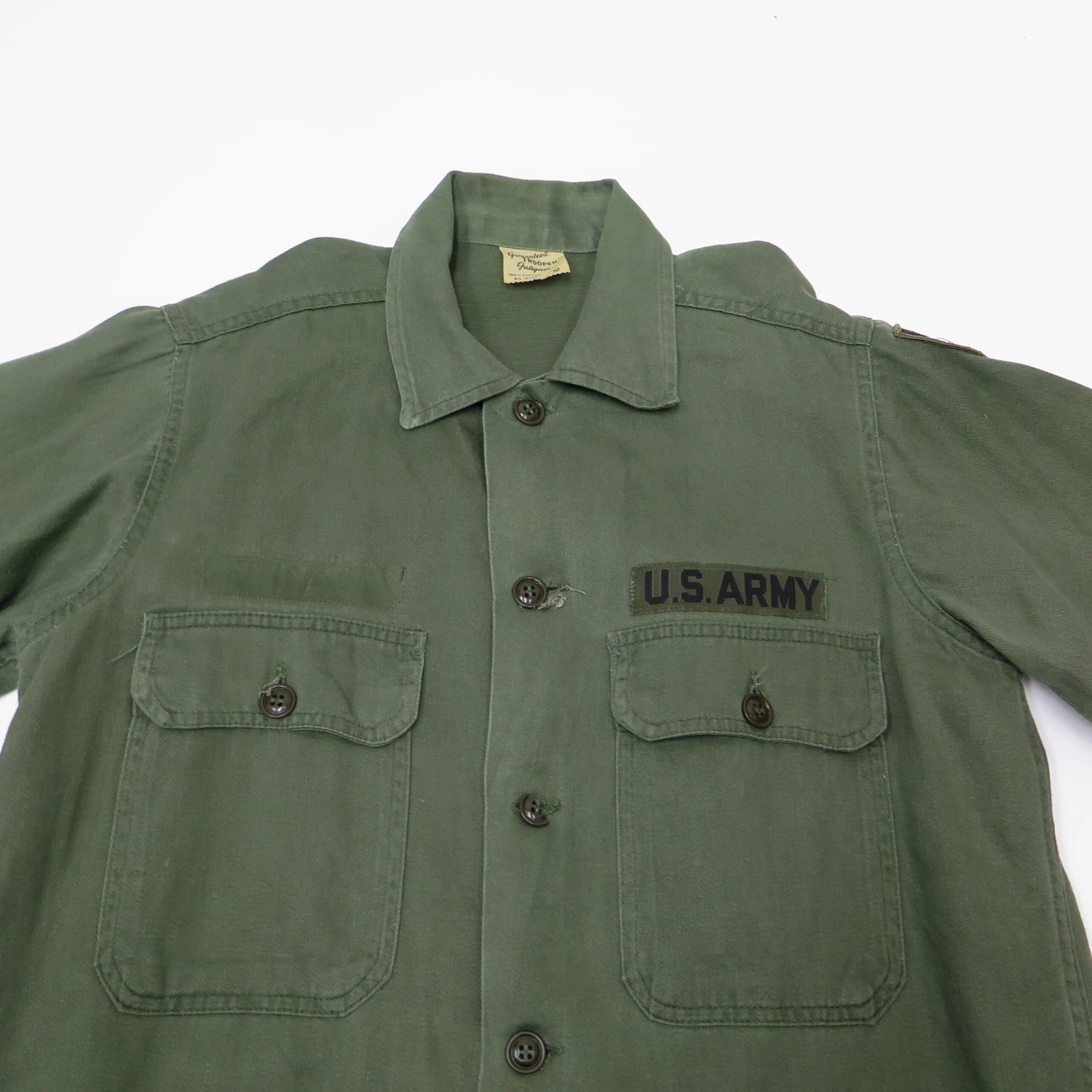 Designed to be loose fitting, it was typically worn over a white T-shirt and was tucked into the utility trousers. Though the lighter and quicker drying Tropical Combat Uniform had been developed in 1962, three years prior to the introduction of U.S ground troops in Vietnam, the utility shirt and trousers were still worn by infantrymen early in the war.