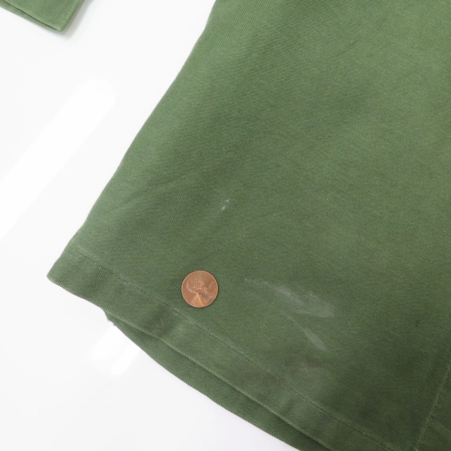 The Army’s first pattern utility shirt was standardized in 19581 and replaced the near identical utility jacket. It was made from olive green (OG-107) 8.5oz cotton sateen and boasted two patch pockets with straight cut flaps. The shirt also had an unusually low first summary and no summary cuffs.