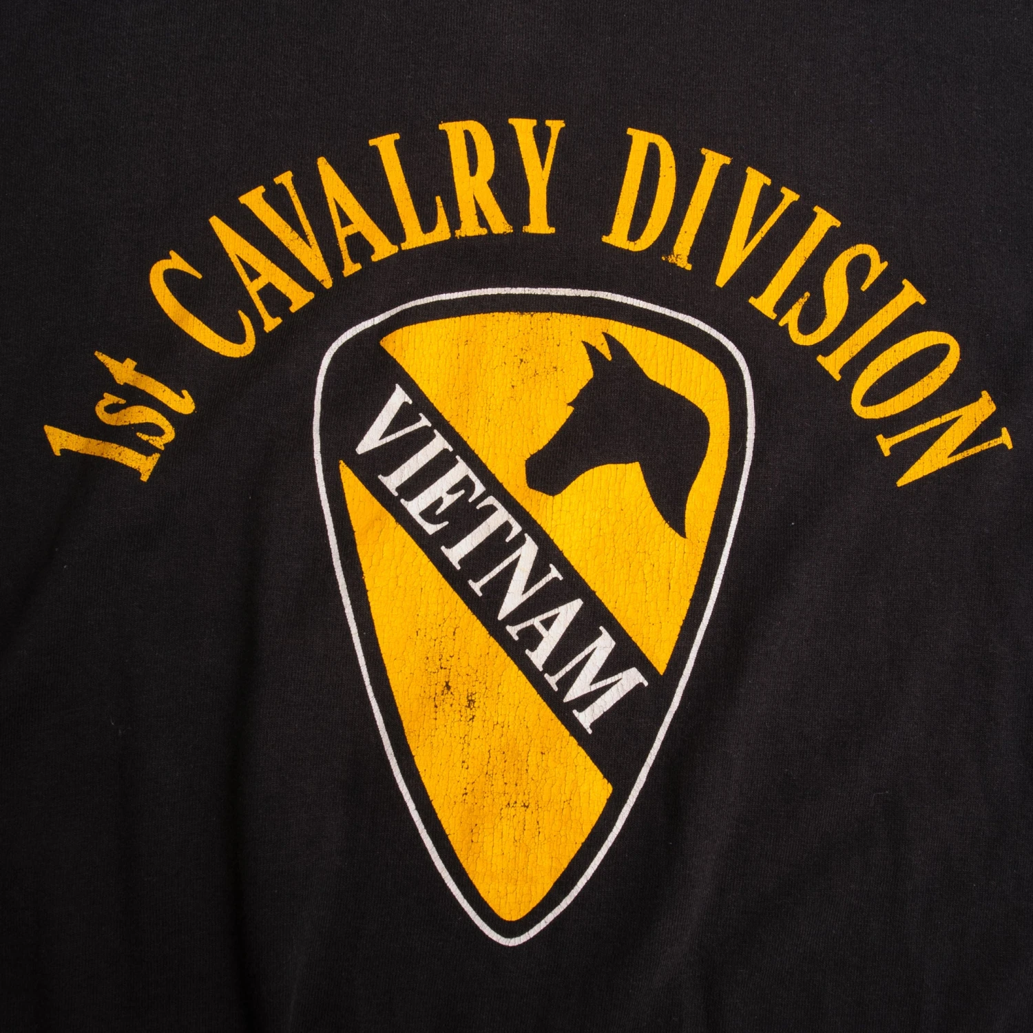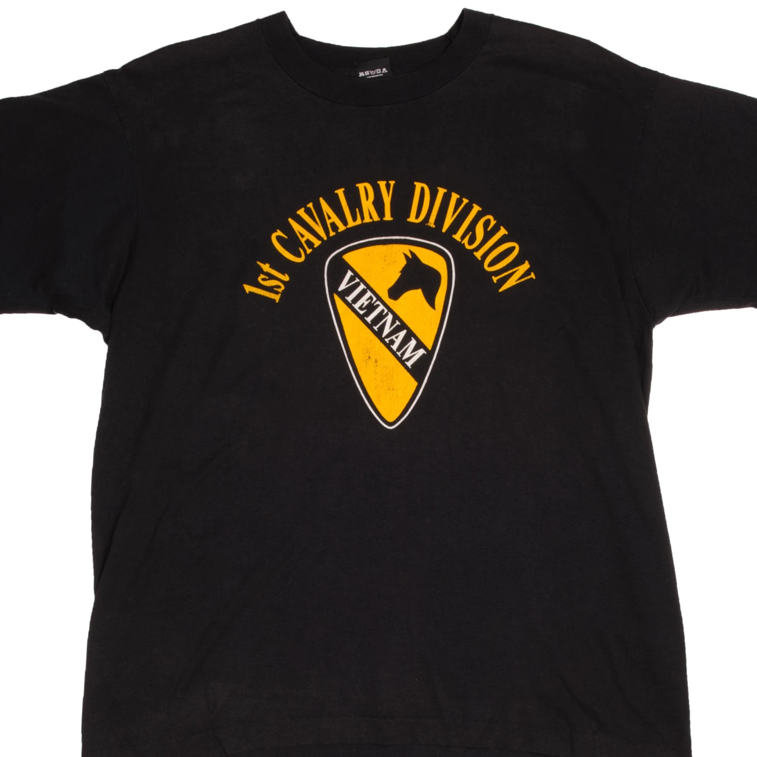 Vintage Black 1st Cavalry Division Vietnam T-Shirt 90s size XLarge Made in USA with single stitch sleeves.