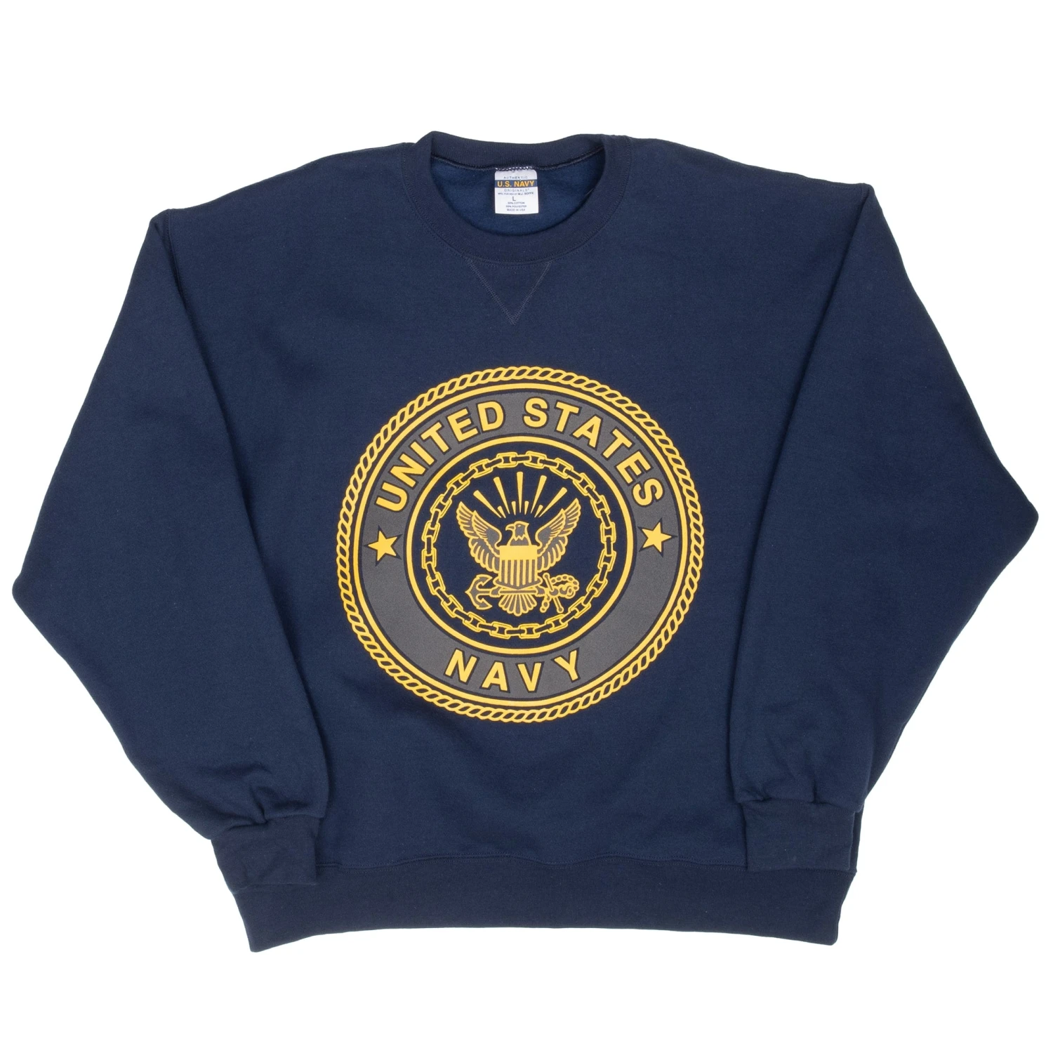 Vintage Authentic Usn Navy Blue Sweatshirt 2000S Size Large Made In Usa