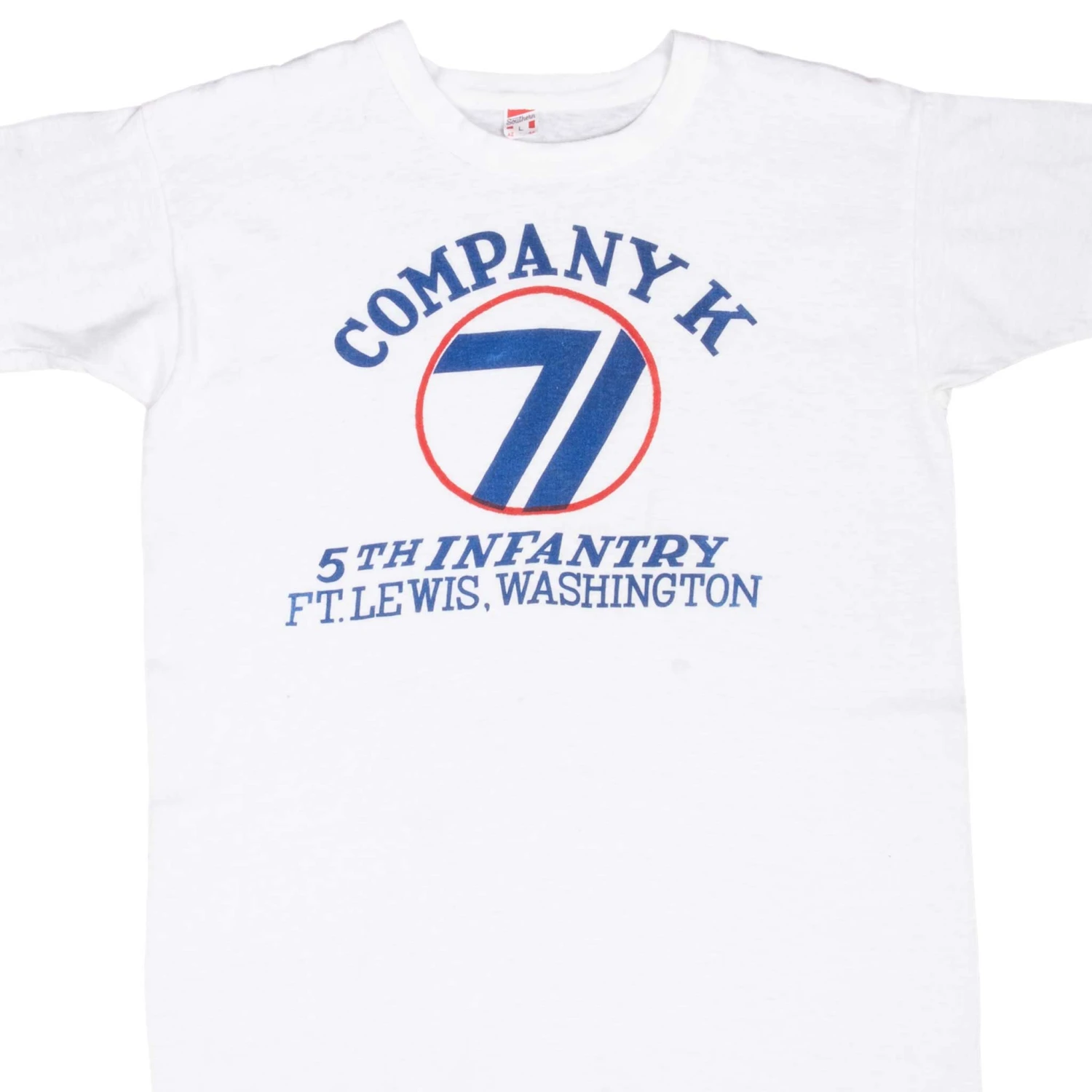 Vintage Company K 5Th Infantry Ft Lewis Washington 1950S Russell Southern Tee Shirt Size Medium With Single Stitch Sleeves