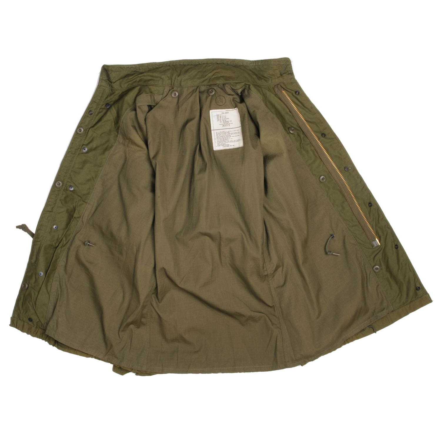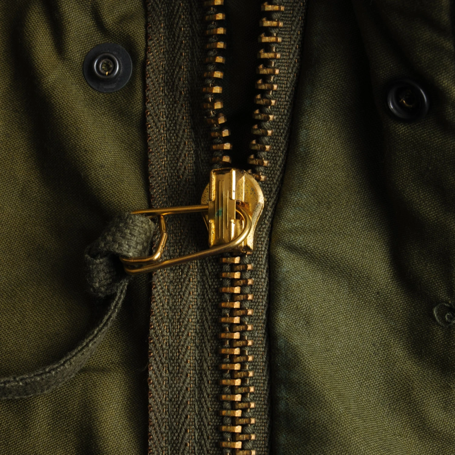 The hip length M1965 cold weather coat was made from OG-107 water repellent and wind resistant cotton-nylon sateen and had a zip front closure and Velcro cuff fasteners. The two bellows type chest pockets and two lower inside hanging pockets were closed by snap fasteners and the hood was zipped into the back of the coat’s rounded collar. Like its M1951 predecessor it had both waist and hem drawstrings and could be fitted with a detachable liner.
