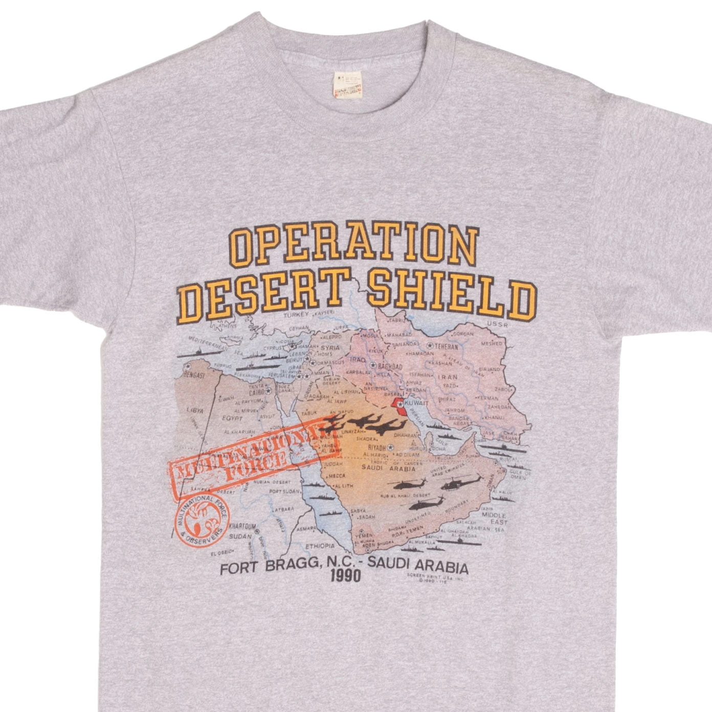 Vintage Operation Desert Shield Saudi Arabia 1990 Tee Shirt Size Small Made In USA With Single Stitch Sleeves