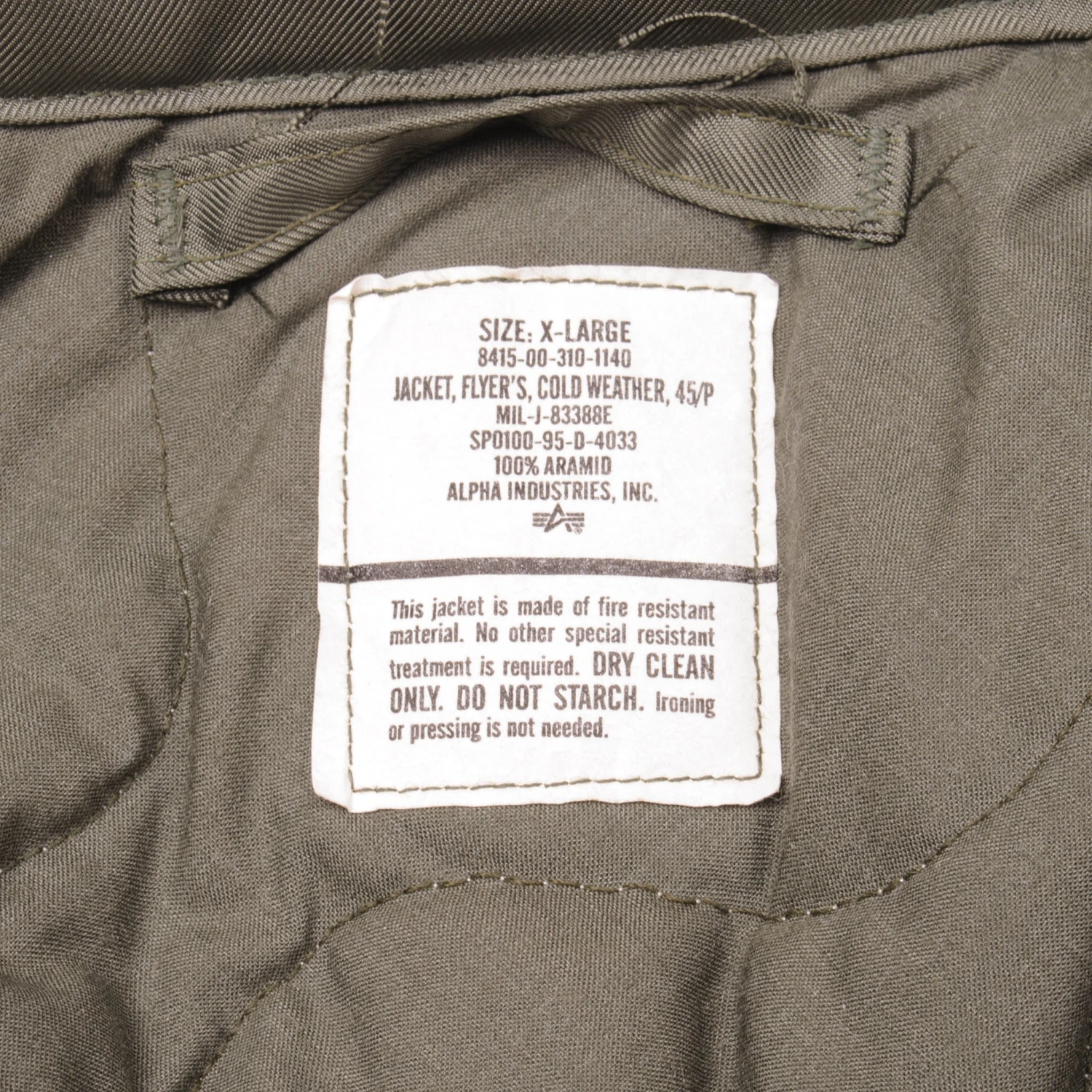 The military Flight Jacket CWU-45P is still currently used, it was made for colder weather and is fire resistant.