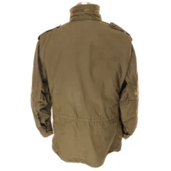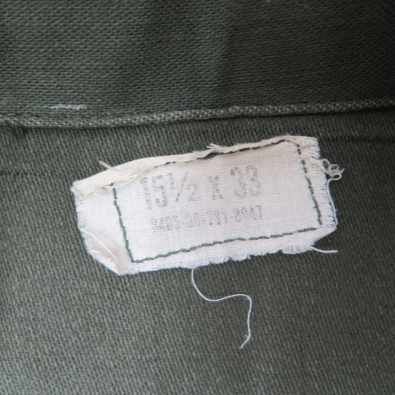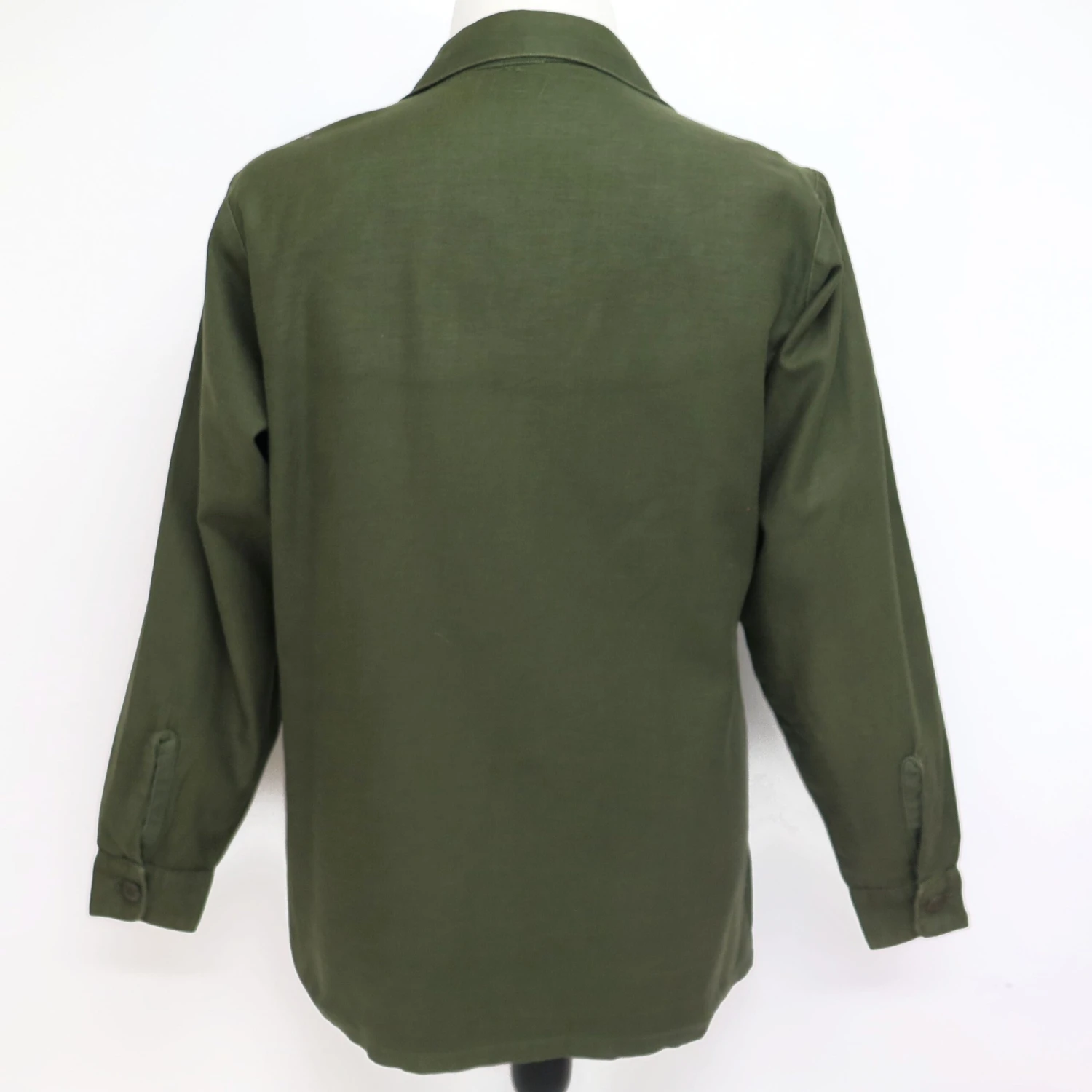 The 1964 design of the Utility Shirt featured V-cut pocket flaps, cuffed sleeves and domed plastic summarys.1 Like its predecessor, it was made from olive green (OG-107) 8.8oz cotton sateen.