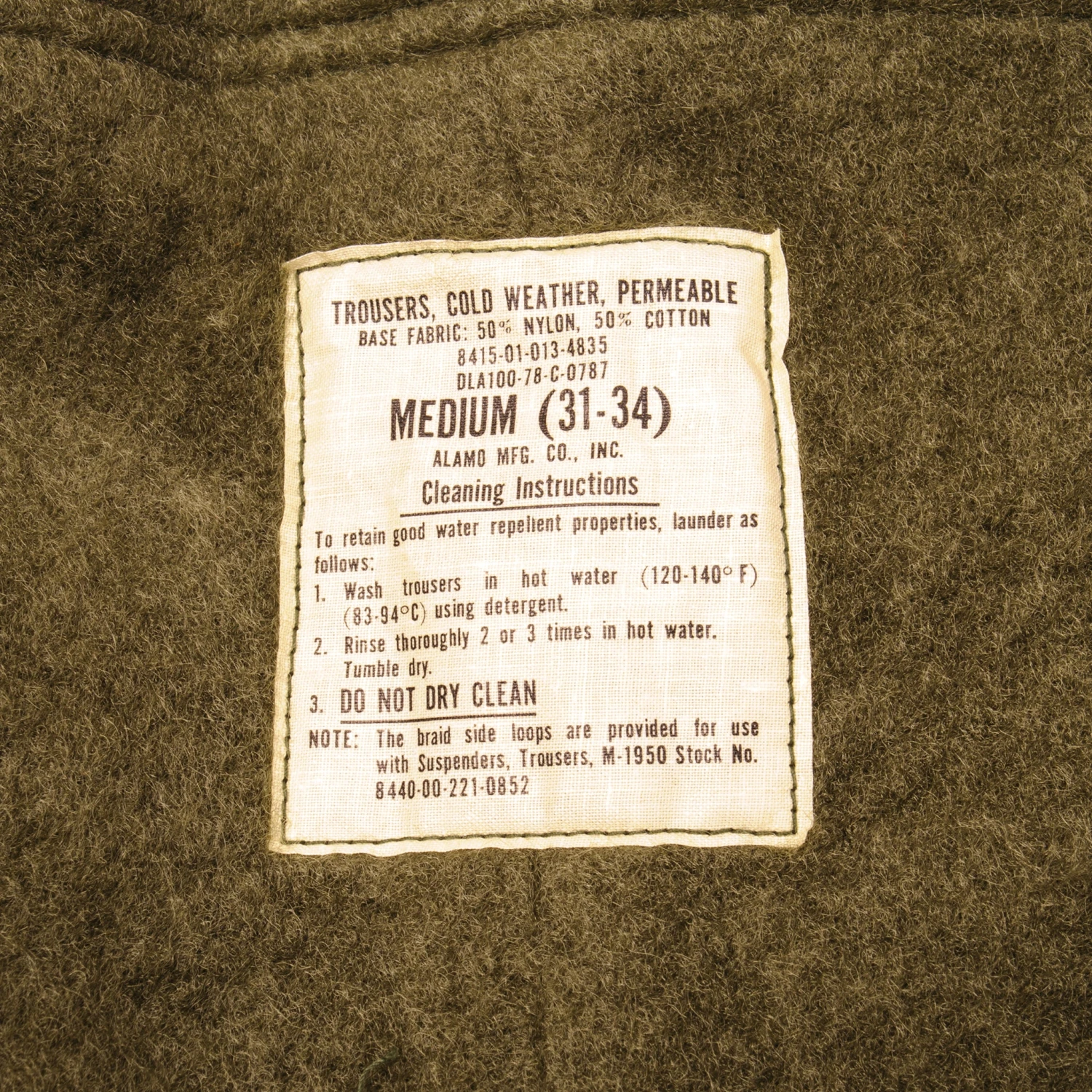 VINTAGE US ARMY COLD WEATHER PERMEABLE TROUSERS PANTS 1978 SIZE MEDIUM W34 L29 NOS(Vintage Us Army Cold Weather Permeable Trousers Pants 1978 Size Medium W34 L29 Nos)