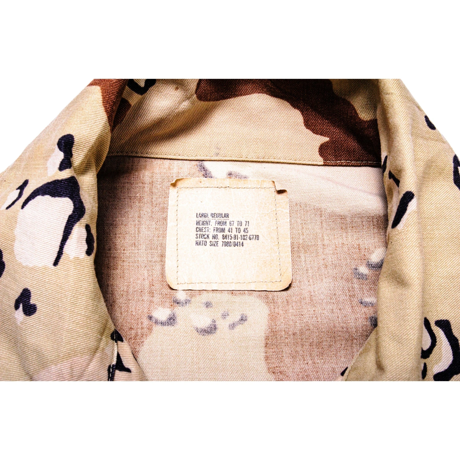 VINTAGE US ARMY COMBAT JACKET DESERT STORM CAMOUFLAGE 1990 SIZE LARGE REGULAR(Us Army Desert Storm Camouflage 1990 Shirt Combat Jacket)