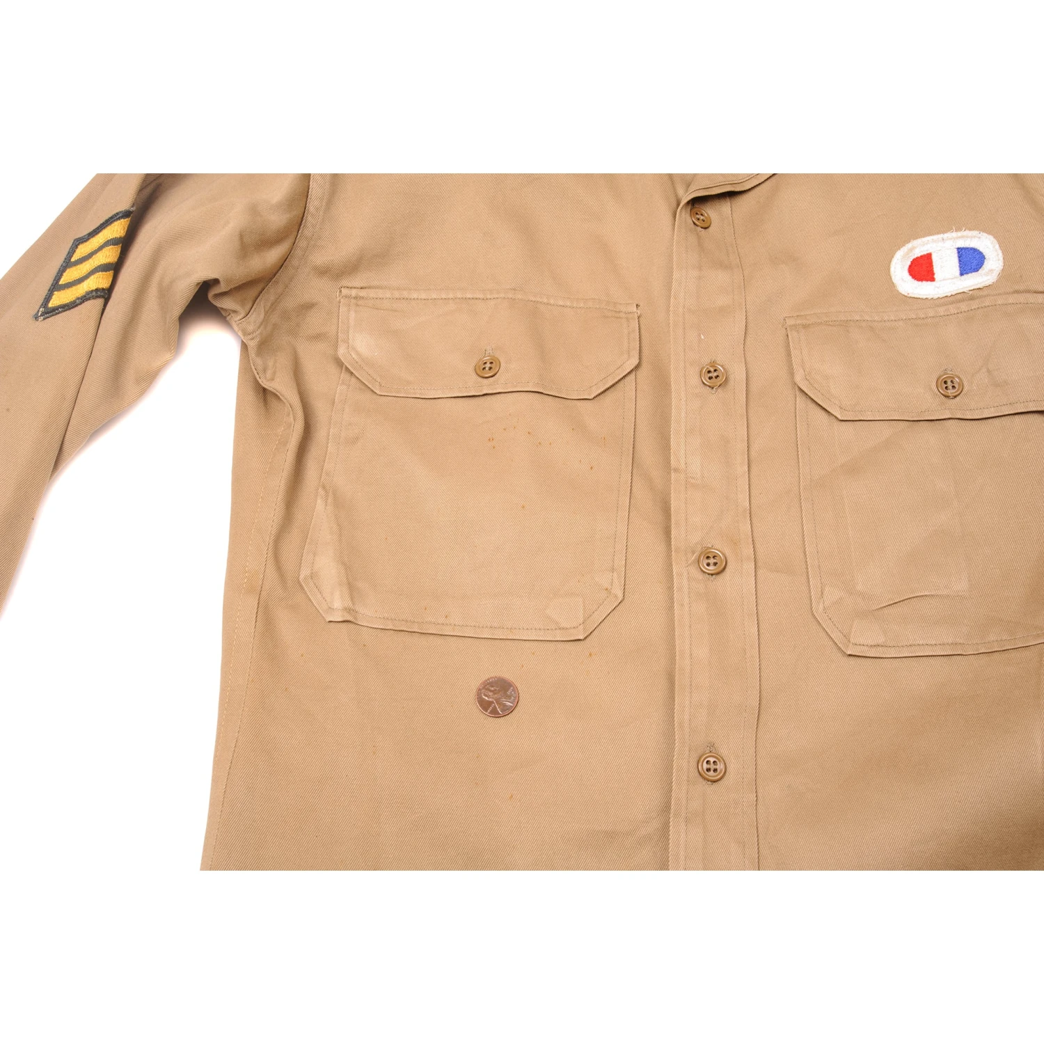 Vintage US Army Cotton Shirt M-37 M37 Khaki WW2 Era Patched.