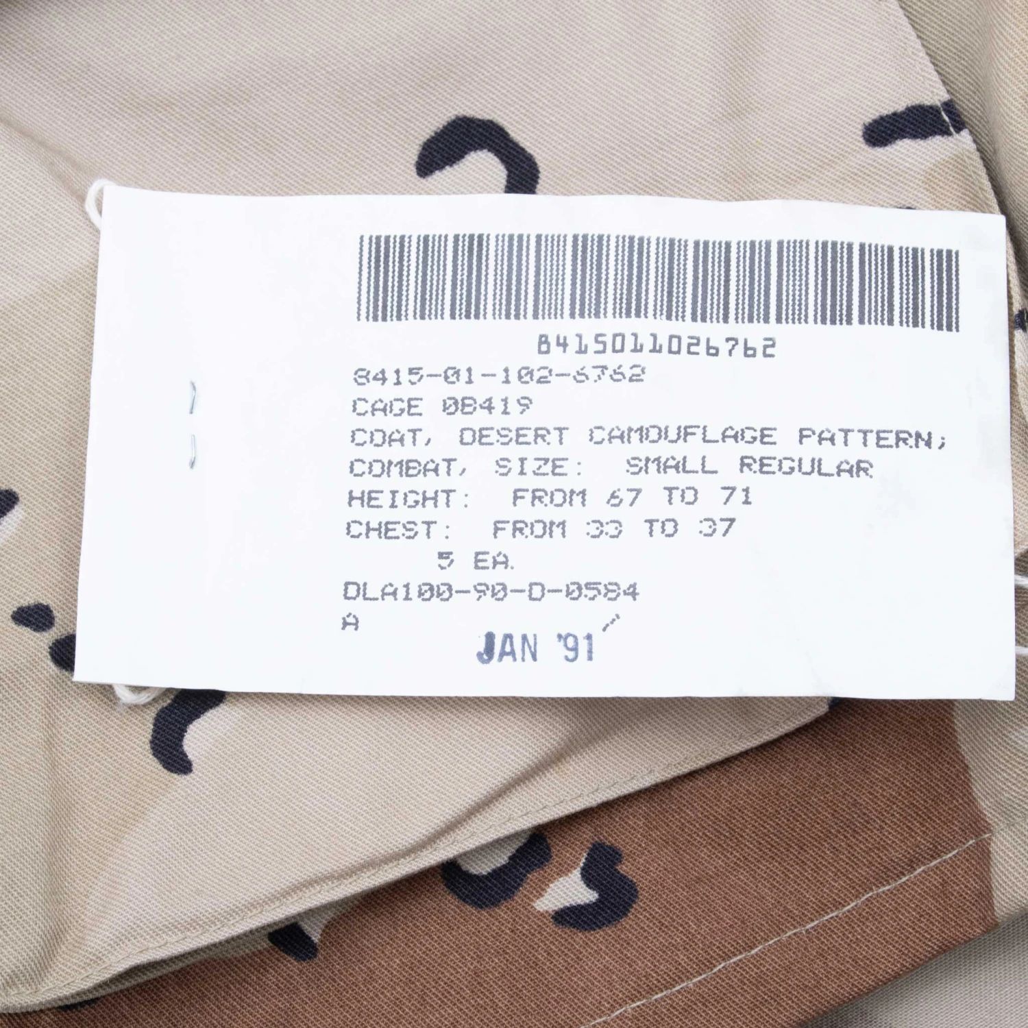VINTAGE US ARMY DESERT CAMO CHOCOLATE CHIP COMBAT JACKET 1990 SMALL REGULAR NOS(Vintage Us Army Desert Camo Chocolate Chip Jacket 1990 Small Regular Nos)
