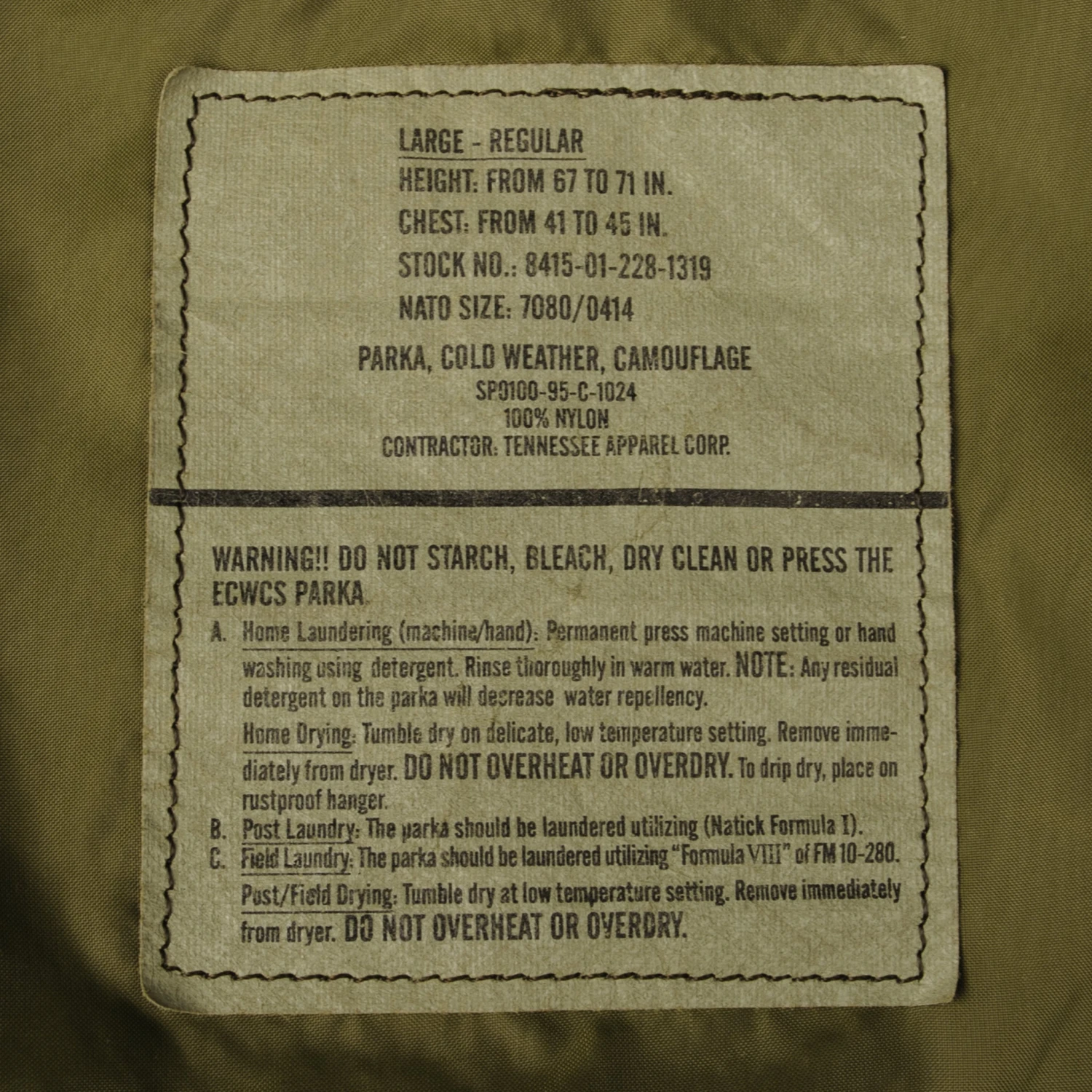 VINTAGE US ARMY ECWCS PARKA 1995 SIZE LARGE REGULAR GORE TEX(Vintage Us Army Ecwcs Parka 1995 Size Large Regular Gore Tex)