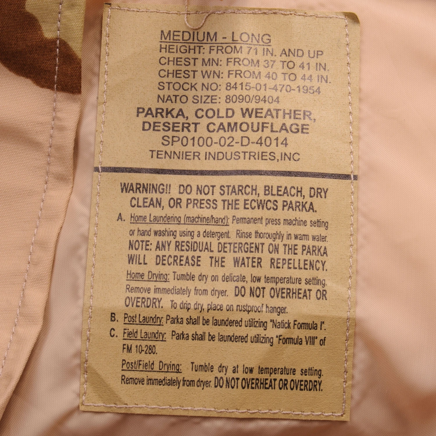 Vintage US Army ECWCS Parka Desert Camouflage 2002 Size Medium Long Deadstock Nos