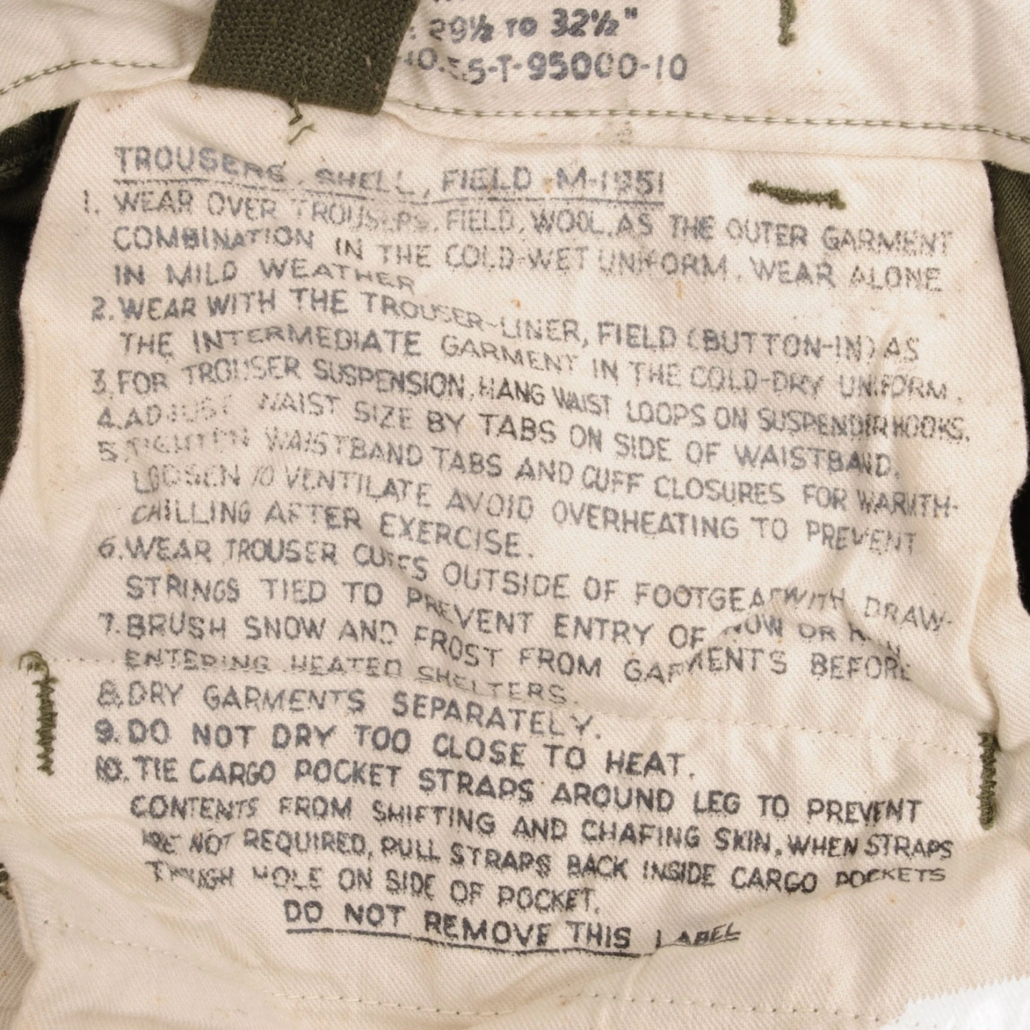 Vintage Us Army Field Trousers Pants M51 1951 Korean War Size Large Regular W38 L30