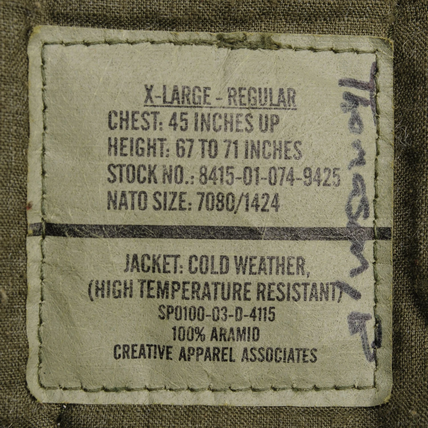 Vintage Us Army Flight Jacket Cold Weather 2003 Size XL.