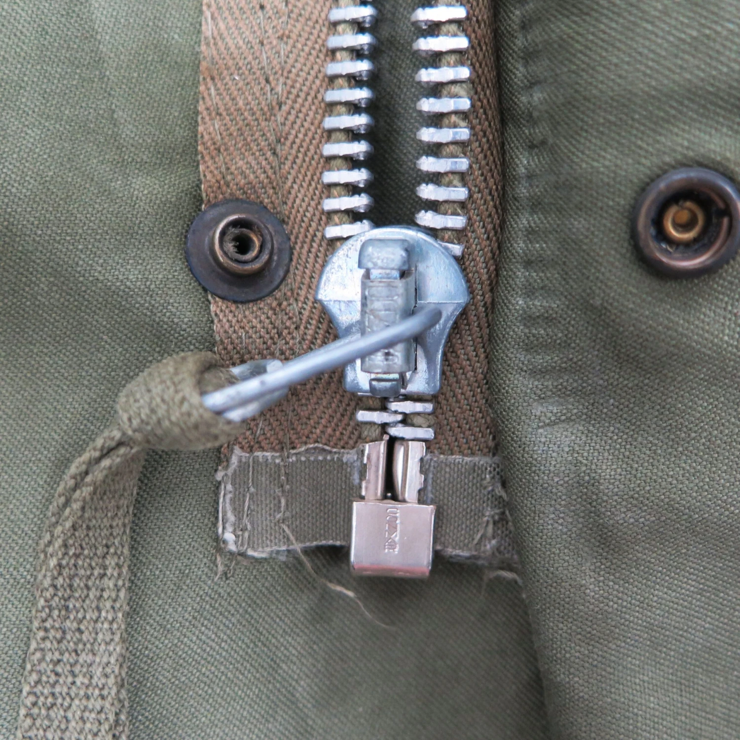 Developed for the Korean War, the M1951 field coat was made from OG-107 water repellent and wind resistant sateen and had a zip front closure and summary cuffs. It had both waist and hem drawstrings and in cold weather could be fitted with a detachable liner. A hood could be summaryed to the coat’s epaulets to provide protection against the elements for both head and face. Though they were rarely needed in Vietnam, field coats were worn in the Central Highlands where it became rather cold at night.
