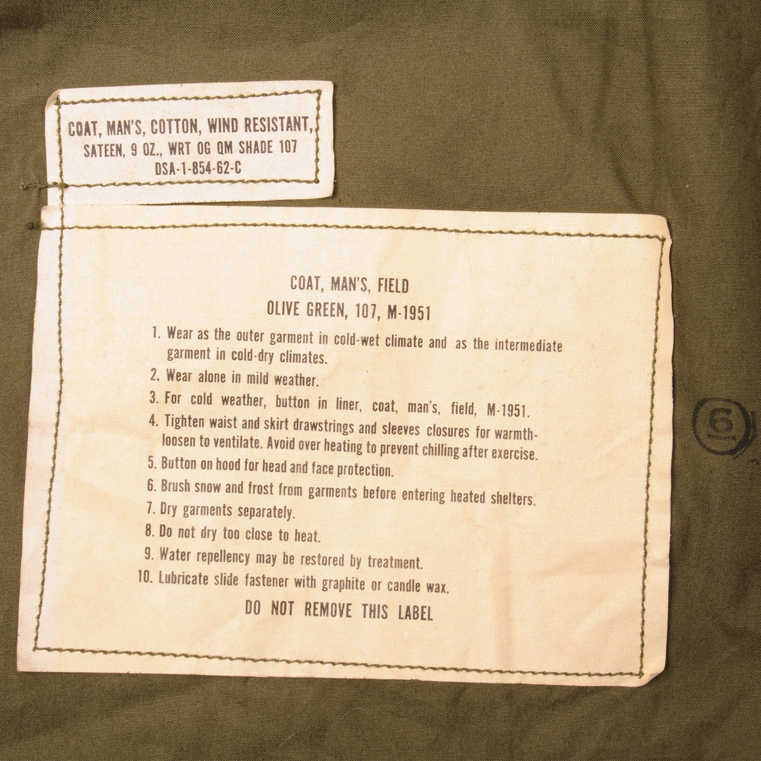 Developed for the Korean War, the M1951 field coat was made from OG-107 water repellent and wind resistant sateen and had a zip front closure and summary cuffs. It had both waist and hem drawstrings and in cold weather could be fitted with a detachable liner. A hood could be summaryed to the coat’s epaulets to provide protection against the elements for both head and face. Though they were rarely needed in Vietnam, field coats were worn in the Central Highlands where it became rather cold at night.