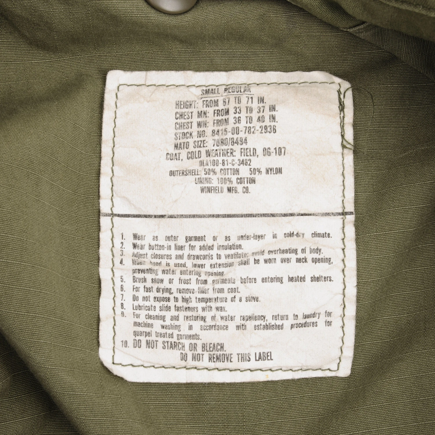 Vintage Us Army M-1965 M65 1981 Field Jacket Size Small Regular