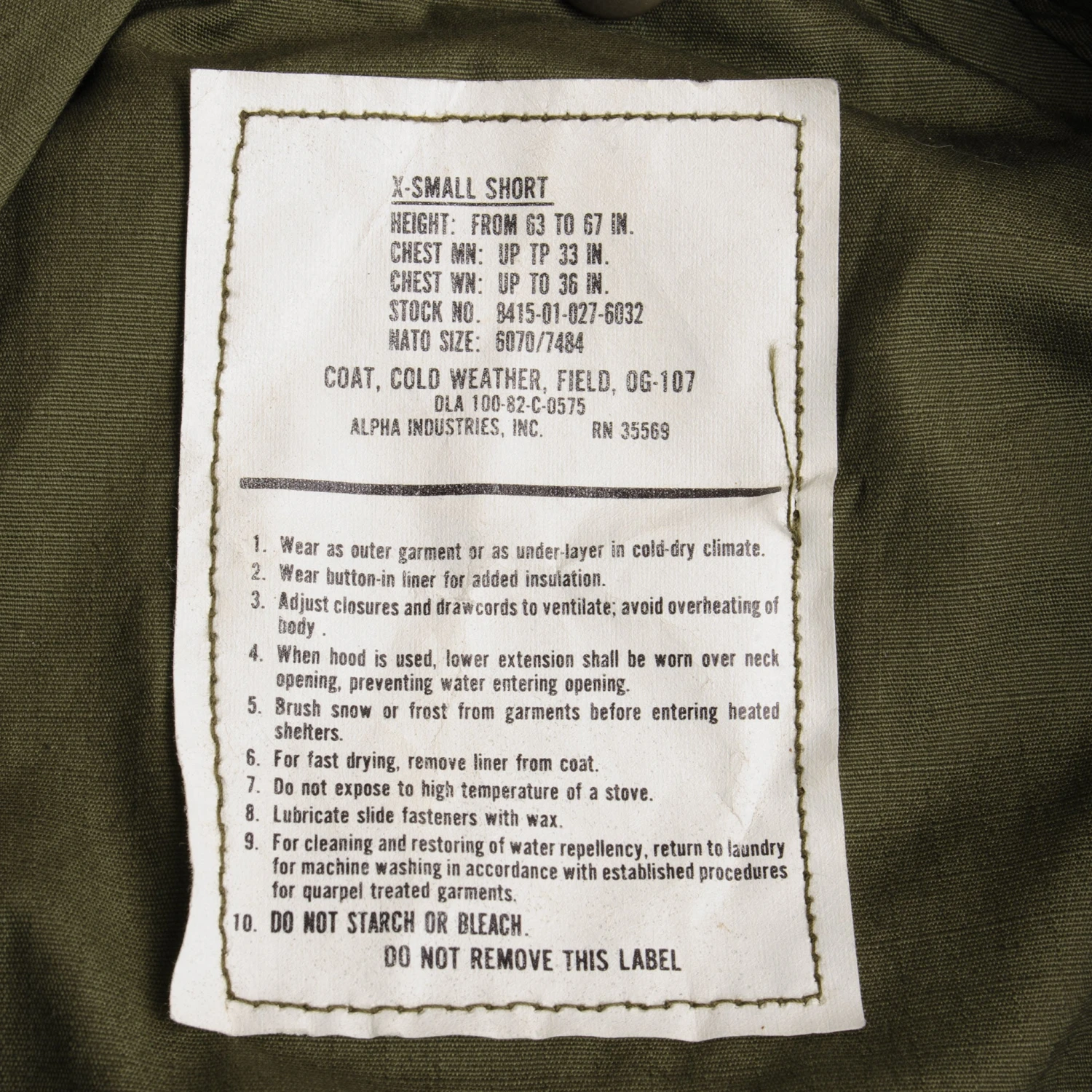 Vintage US Army M-1965 M65 Field Jacket 1982 Size XSmall Short Nos Deadstock
