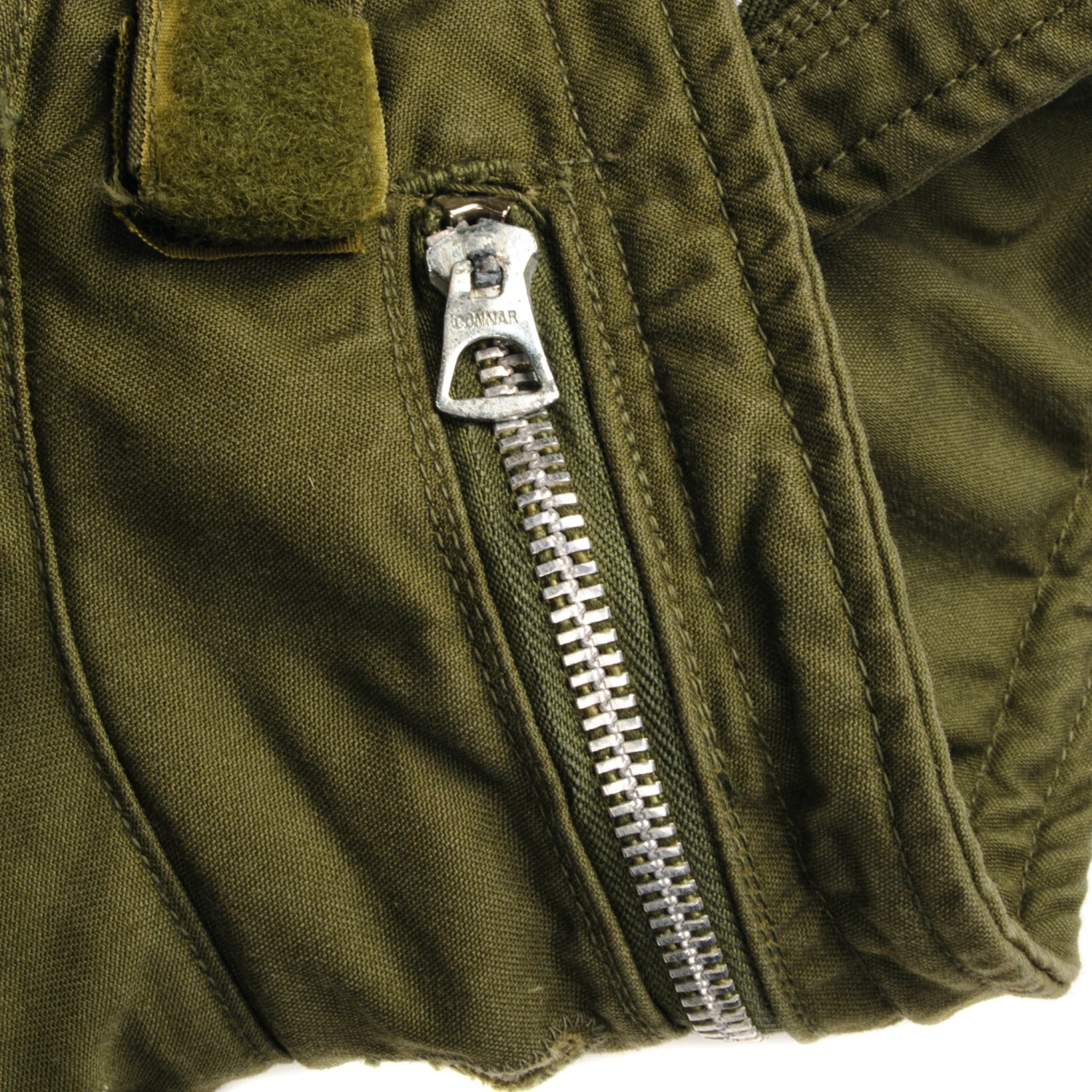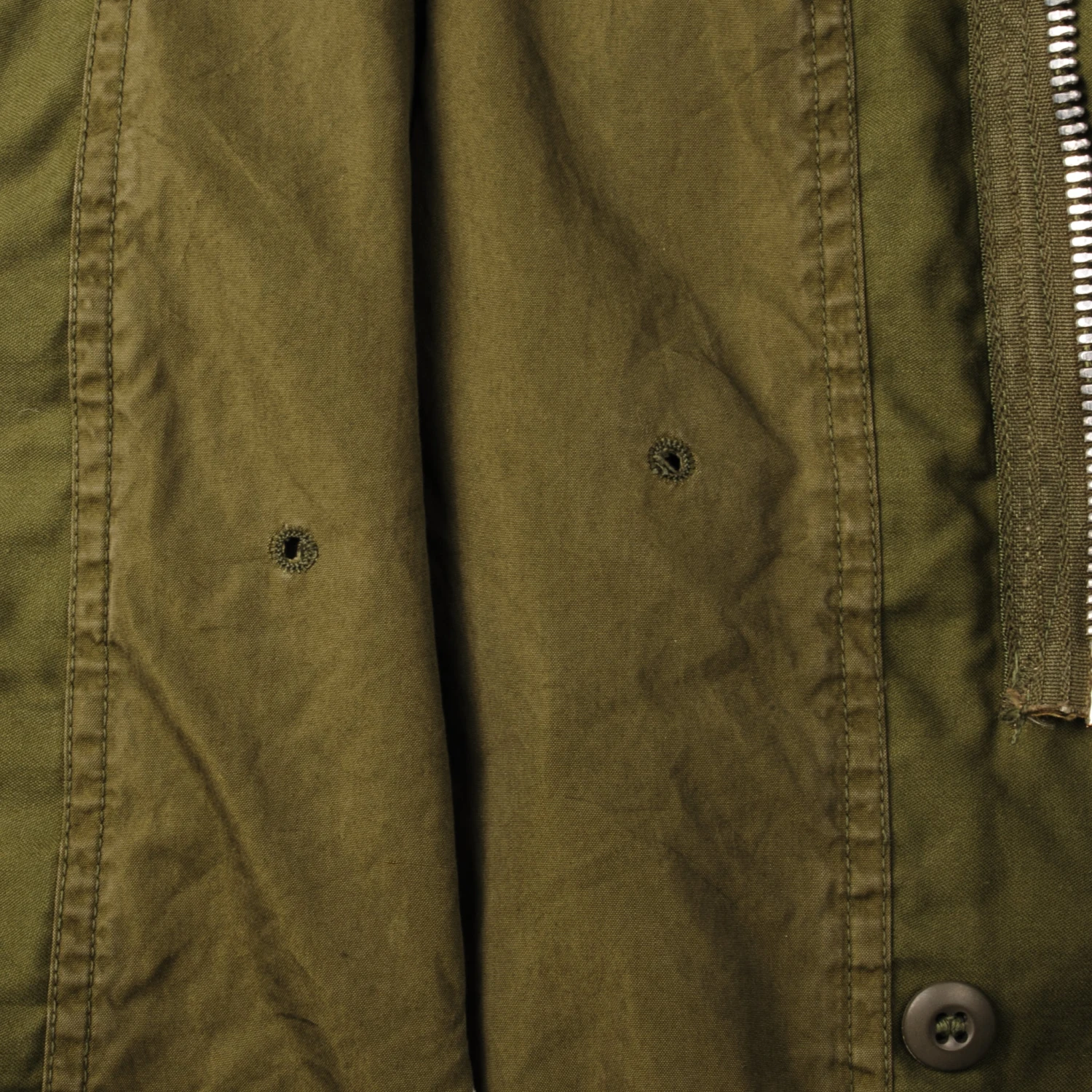 The M-1965 jacket was initially designed by Alpha Industries and was made from OG-107 (Olive Green Shade 107) water repellent and wind resistant cotton-nylon sateen. The fabrics was made by Burlington Fabrics.