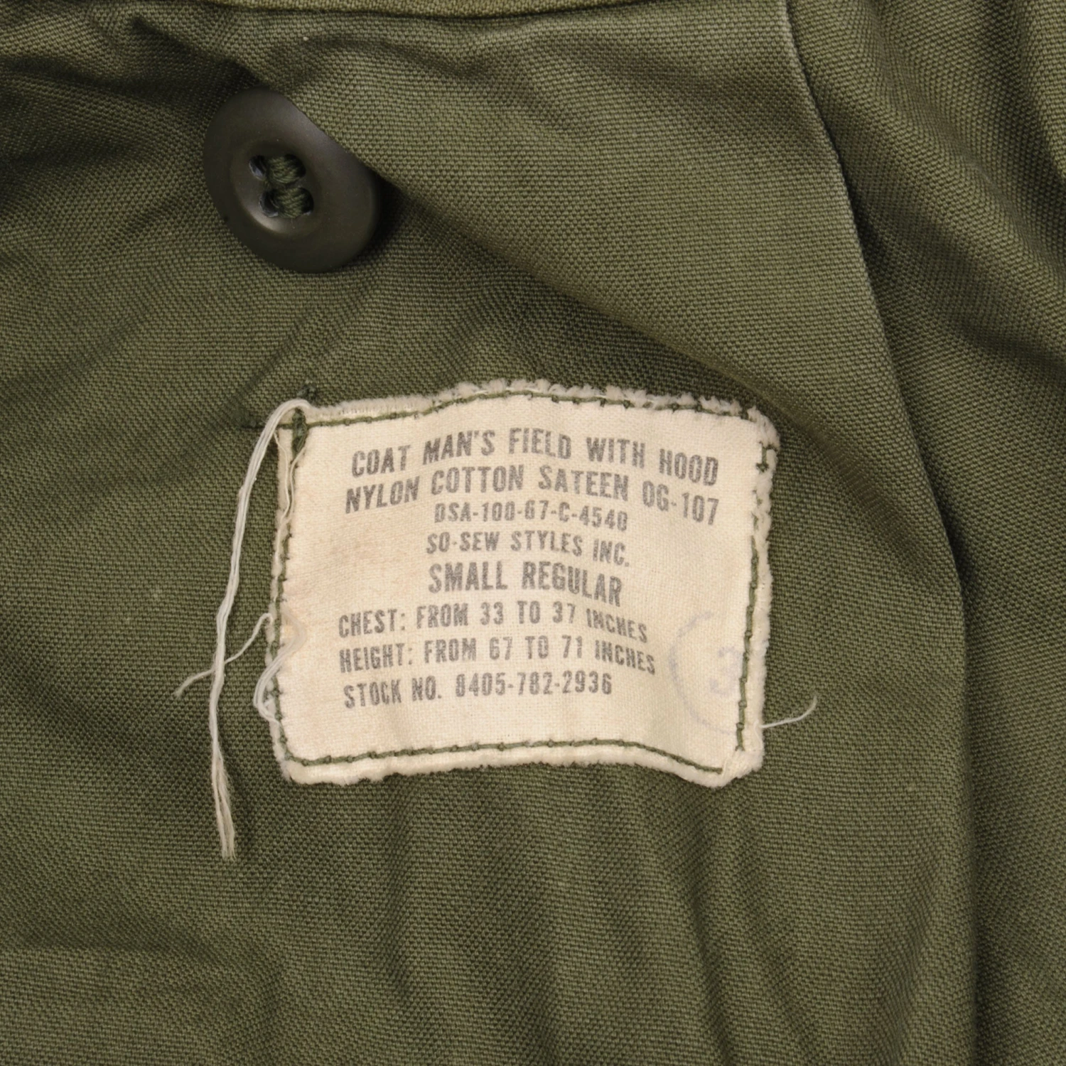 Us Army M-1965 M65 Field Jacket 1967 Vietnam War Size Small Regular