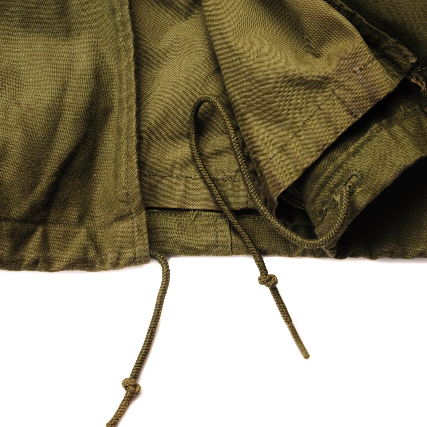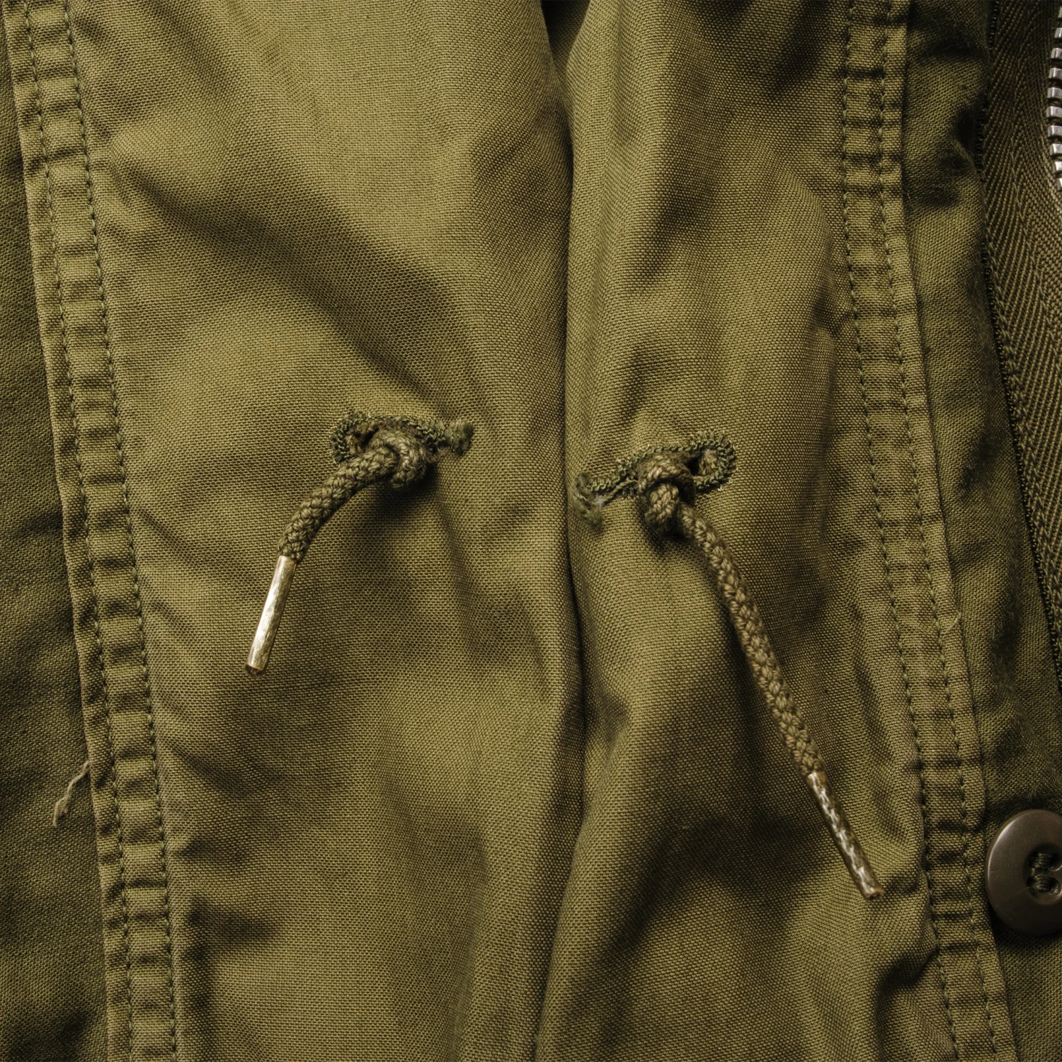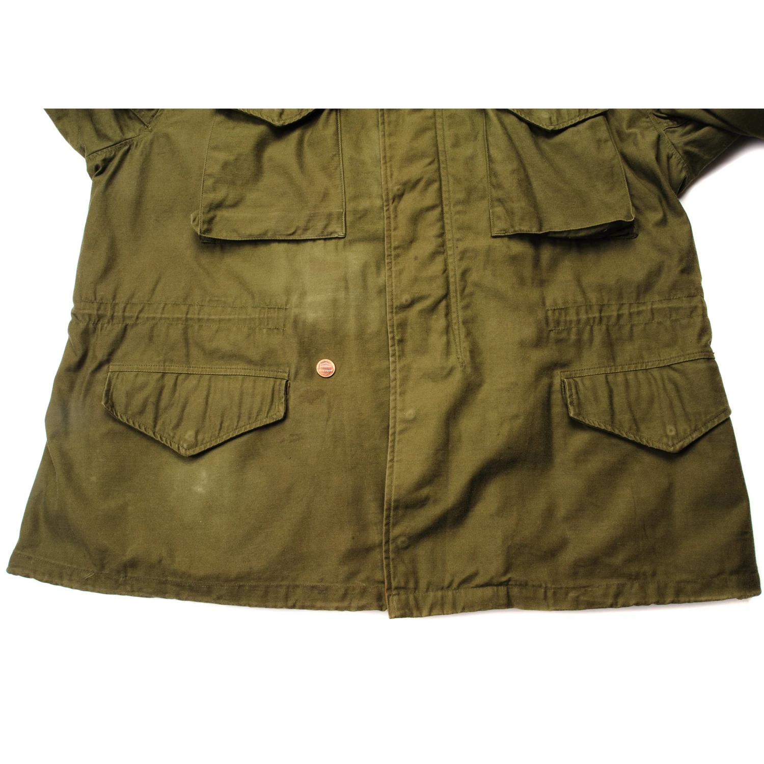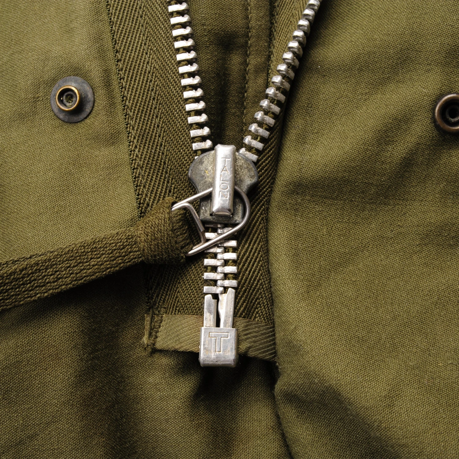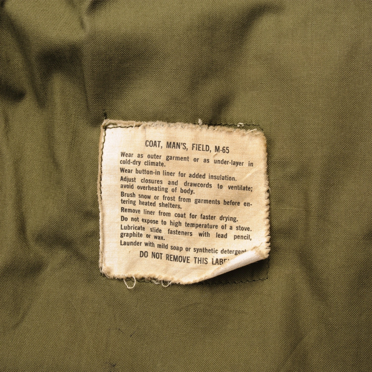 The hip length M1965 cold weather coat was made from OG-107 water repellent and wind resistant cotton-nylon sateen and had a zip front closure and Velcro cuff fasteners. The two bellows type chest pockets and two lower inside hanging pockets were closed by snap fasteners and the hood was zipped into the back of the coat’s rounded collar. Like its M1951 predecessor it had both waist and hem drawstrings and could be fitted with a detachable liner.