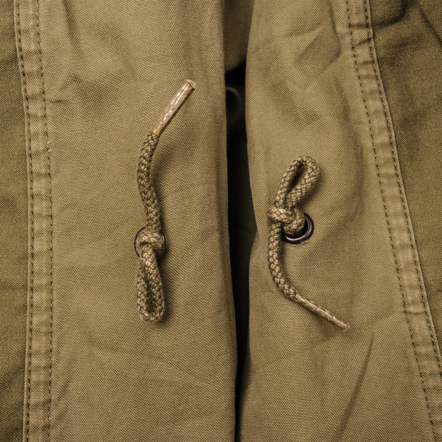 The M-1965 jacket was initially designed by Alpha Industries and was made from OG-107 (Olive Green Shade 107) water repellent and wind resistant cotton-nylon sateen. The fabrics was made by Burlington Fabrics.