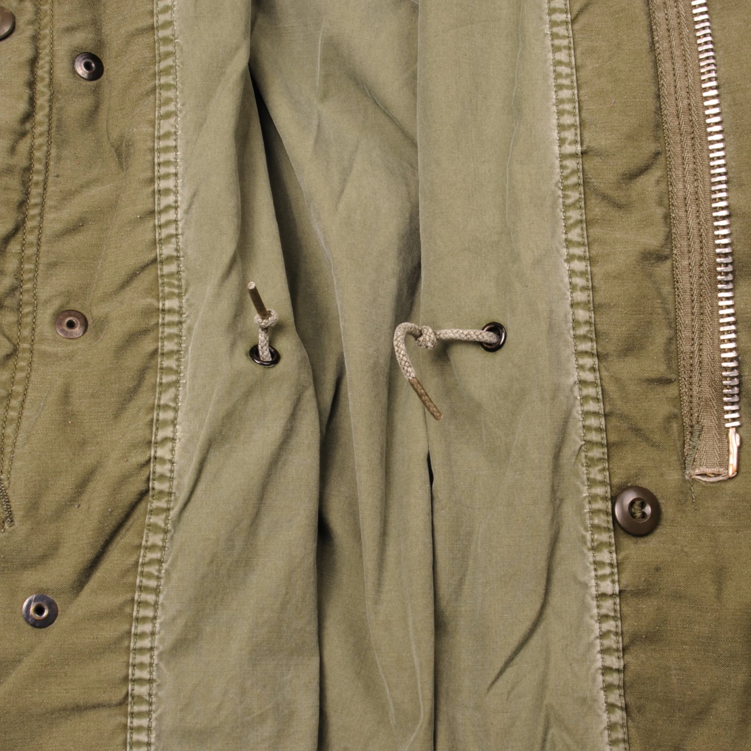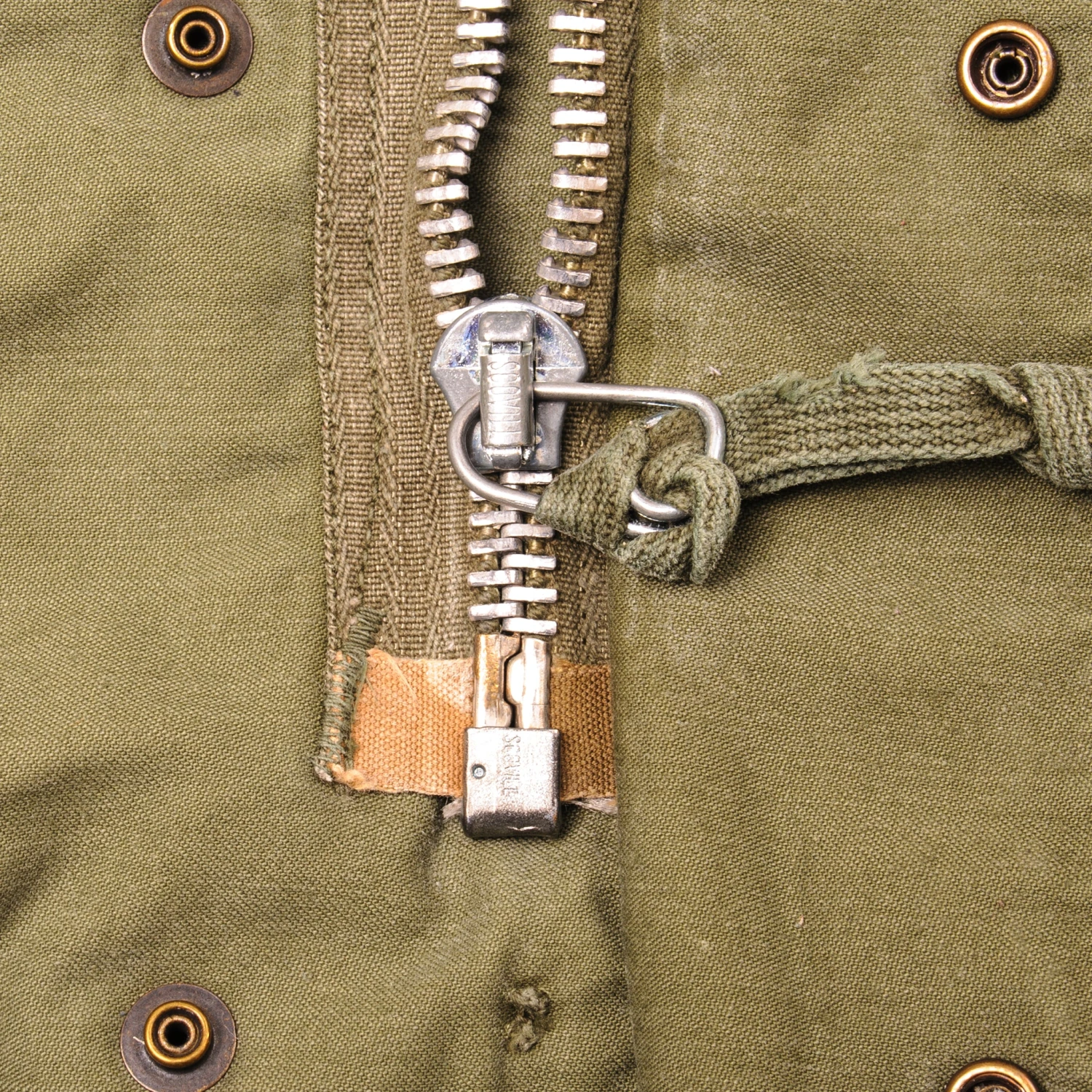The M-1965 jacket was initially designed by Alpha Industries and was made from OG-107 (Olive Green Shade 107) water repellent and wind resistant cotton-nylon sateen. The fabrics was made by Burlington Fabrics.