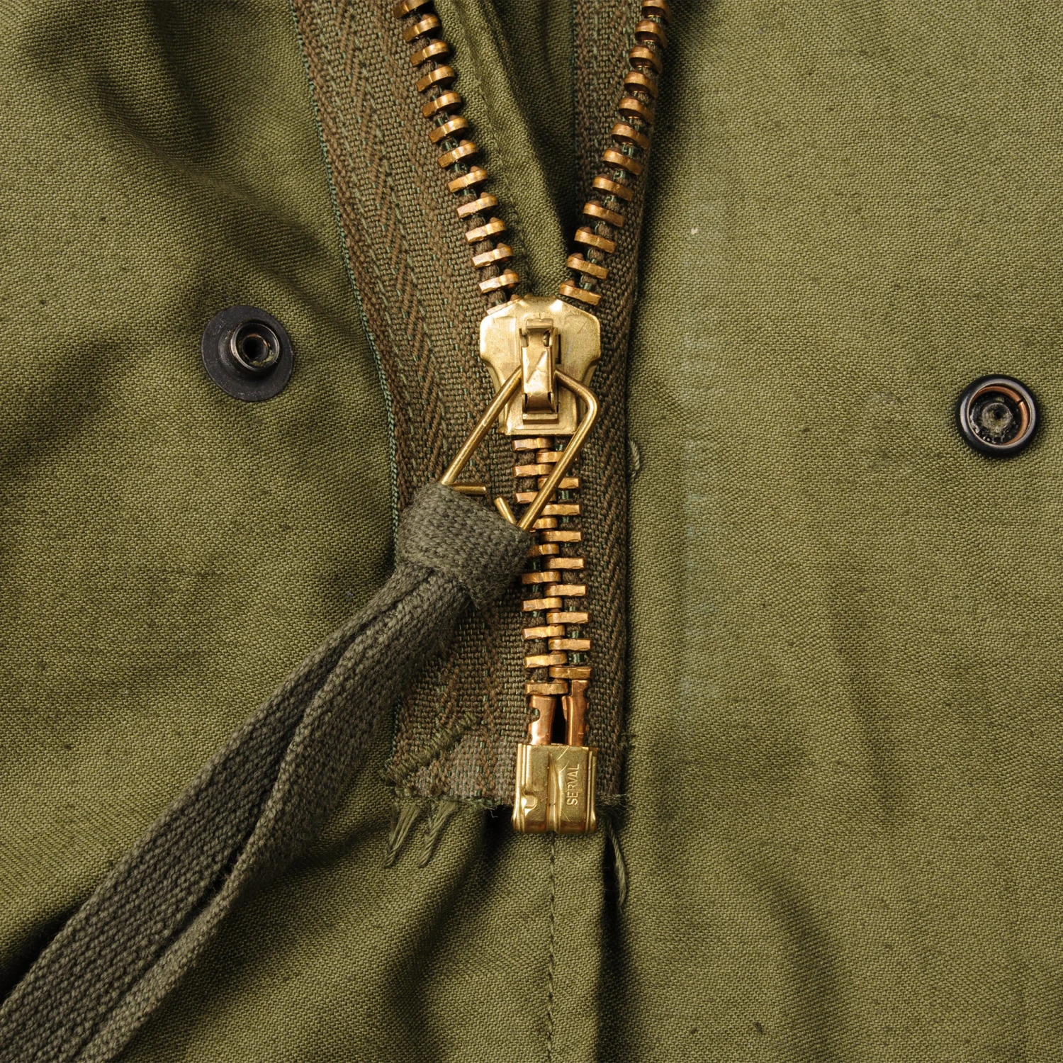 The hip length M1965 cold weather coat was made from OG-107 water repellent and wind resistant cotton-nylon sateen and had a zip front closure and Velcro cuff fasteners. The two bellows type chest pockets and two lower inside hanging pockets were closed by snap fasteners and the hood was zipped into the back of the coat’s rounded collar. Like its M1951 predecessor it had both waist and hem drawstrings and could be fitted with a detachable liner.