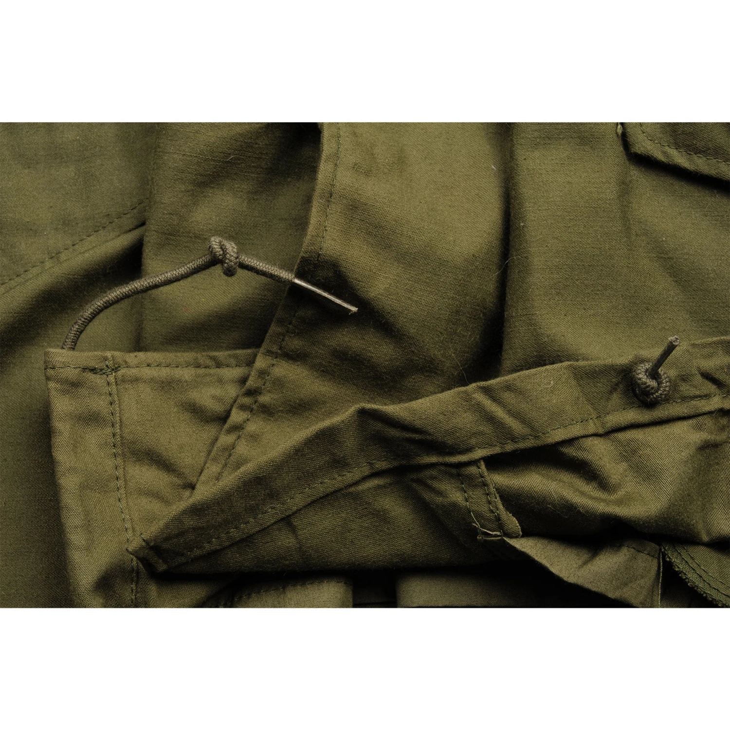 The hip length M1965 cold weather coat was made from OG-107 water repellent and wind resistant cotton-nylon sateen and had a zip front closure and Velcro cuff fasteners. The two bellows type chest pockets and two lower inside hanging pockets were closed by snap fasteners and the hood was zipped into the back of the coat’s rounded collar. Like its M1951 predecessor it had both waist and hem drawstrings and could be fitted with a detachable liner.