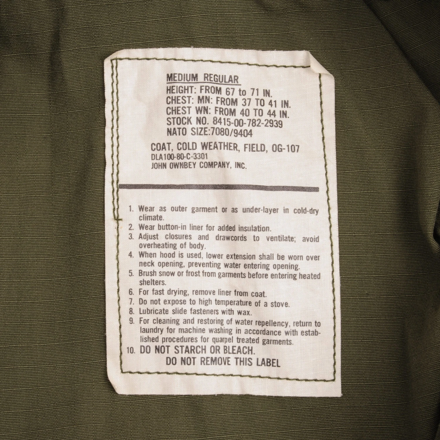 STOCK NO. 8415-00-782-2939