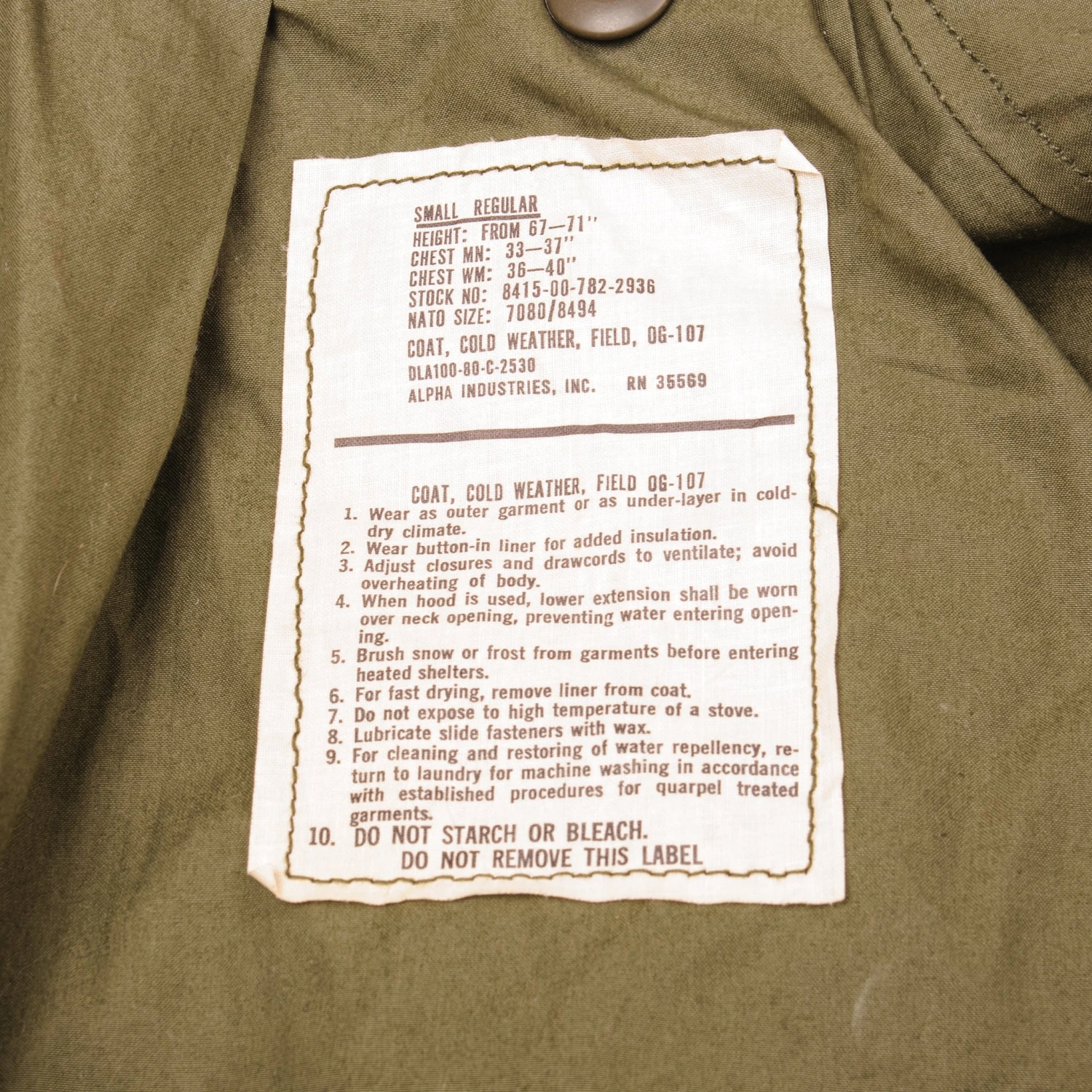 Vintage US Army M-1965 M65 Field Jacket 1980 Size Small Regular.