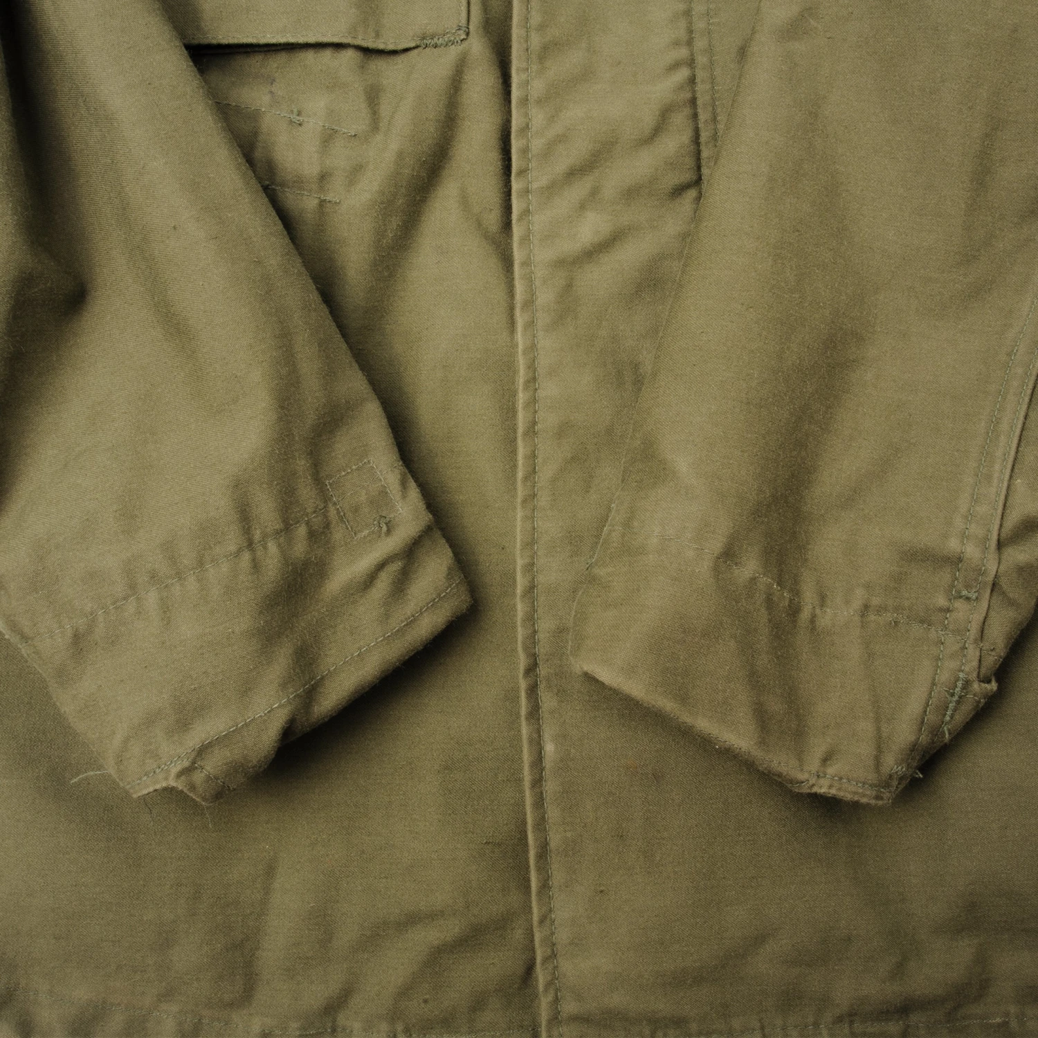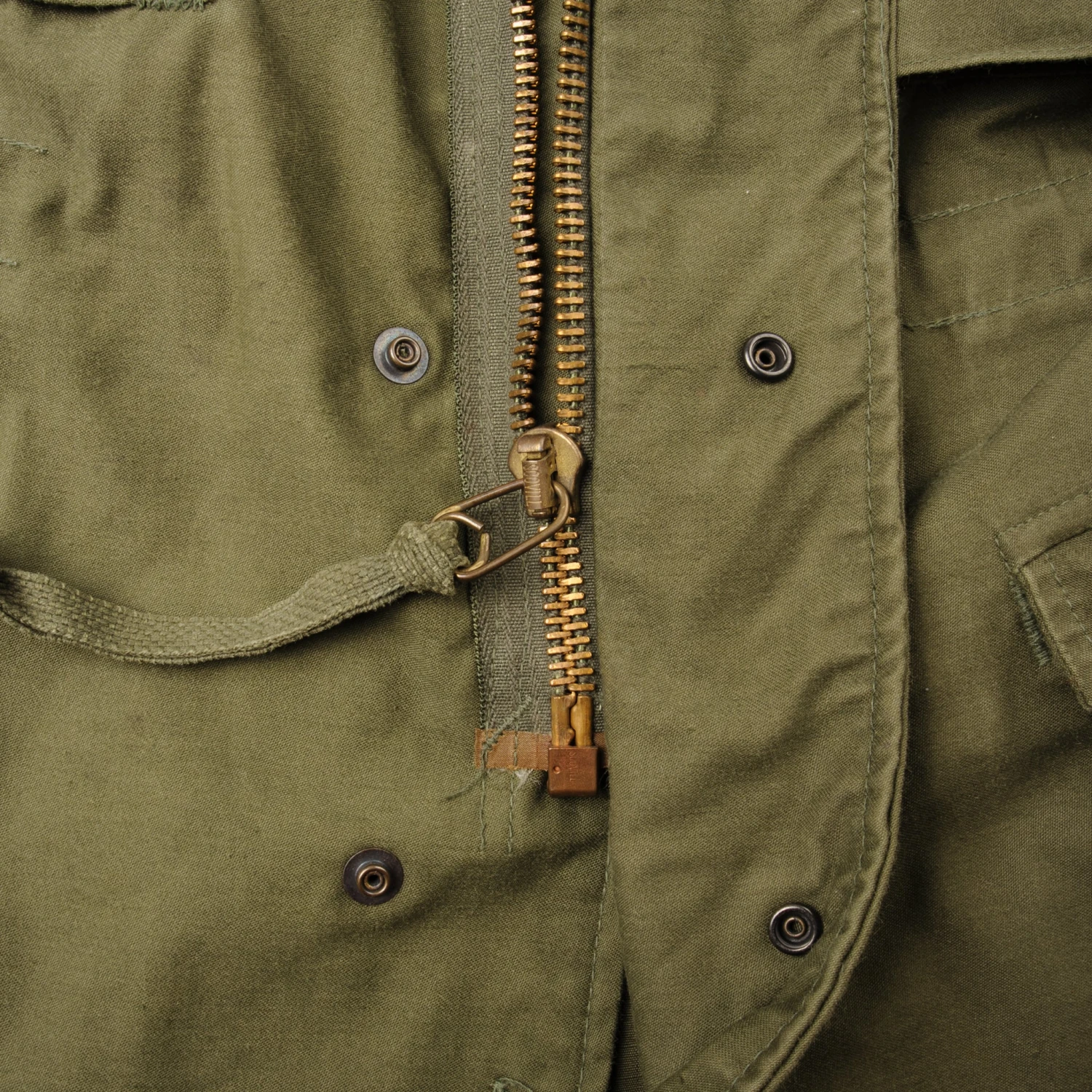 The hip length M1965 cold weather coat was made from OG-107 water repellent and wind resistant cotton-nylon sateen and had a zip front closure and Velcro cuff fasteners. The two bellows type chest pockets and two lower inside hanging pockets were closed by snap fasteners and the hood was zipped into the back of the coat’s rounded collar. Like its M1951 predecessor it had both waist and hem drawstrings and could be fitted with a detachable liner.