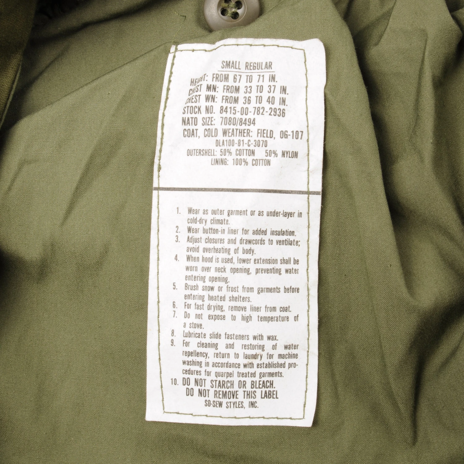 Stock No. : 8415-00-782-2936