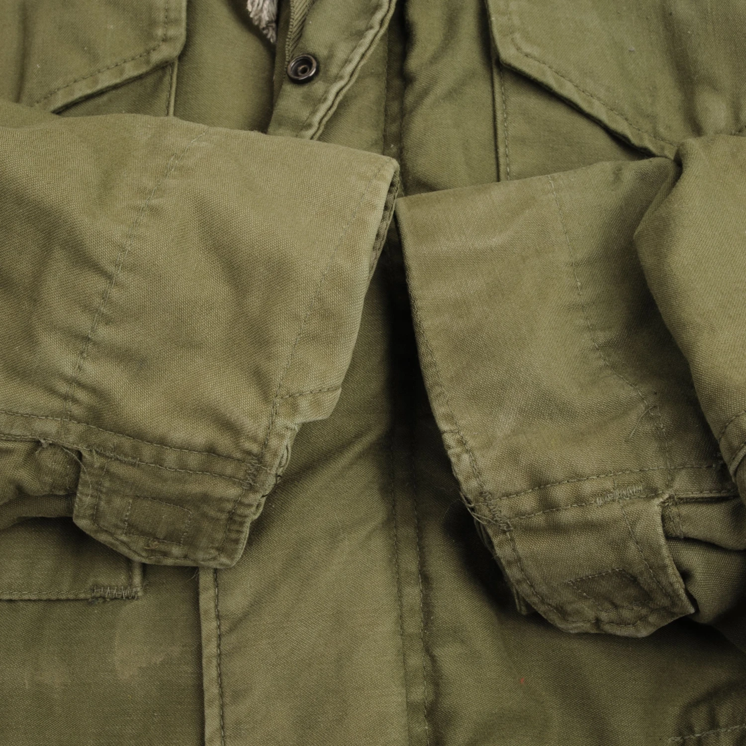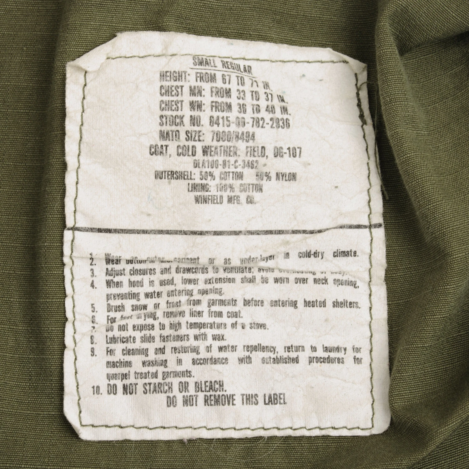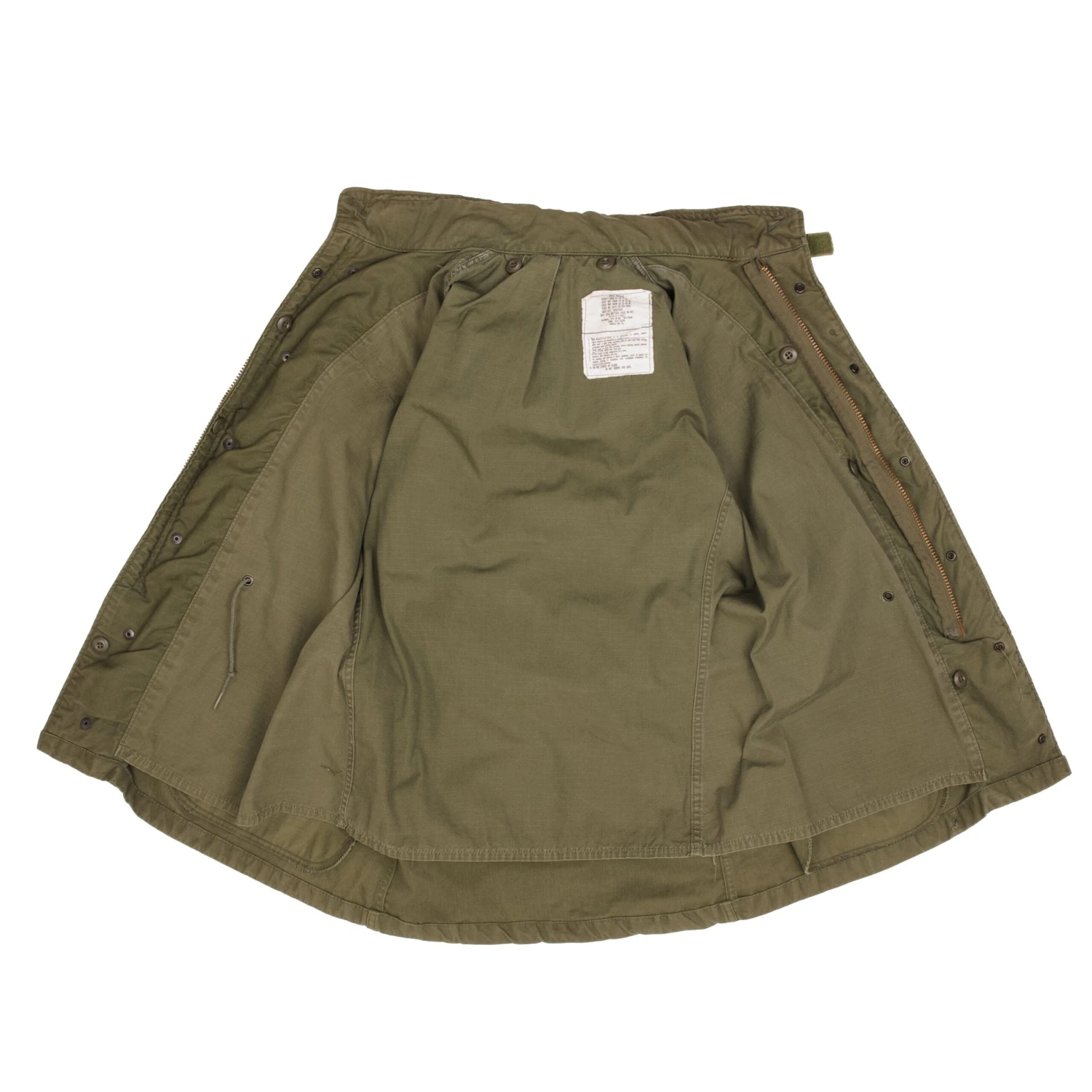 The M-1965 jacket was initially designed by Alpha Industries and was made from OG-107 (Olive Green Shade 107) water repellent and wind resistant cotton-nylon sateen. The fabrics was made by Burlington Fabrics.