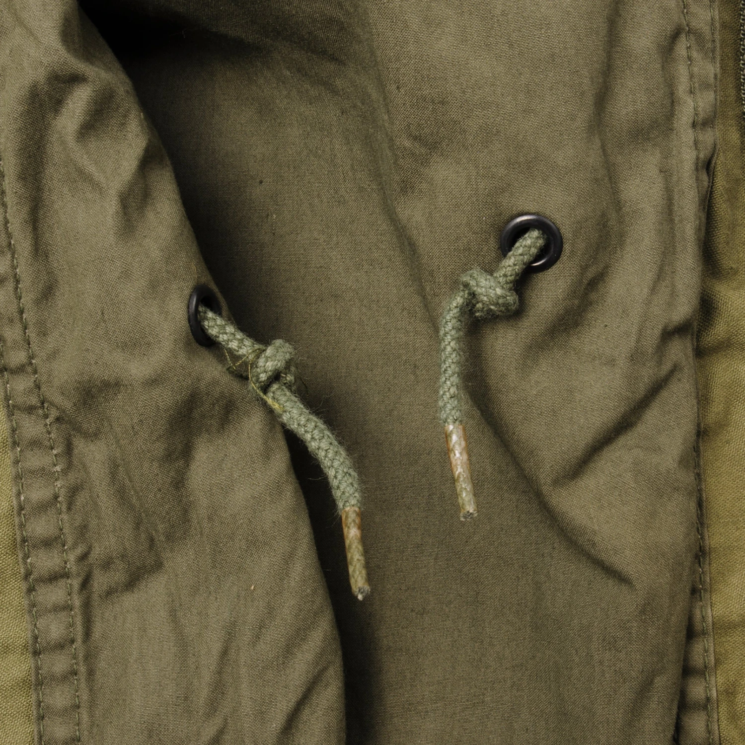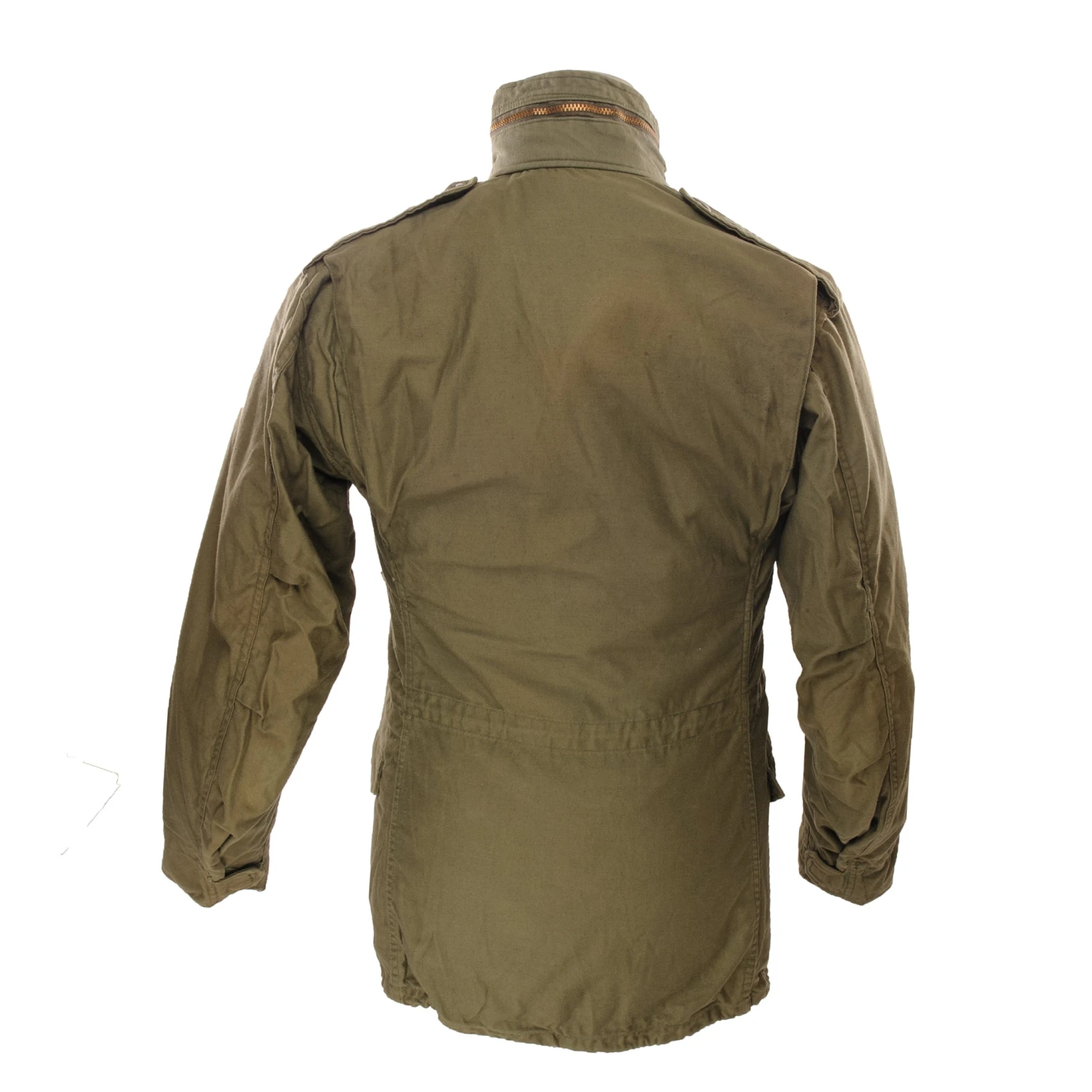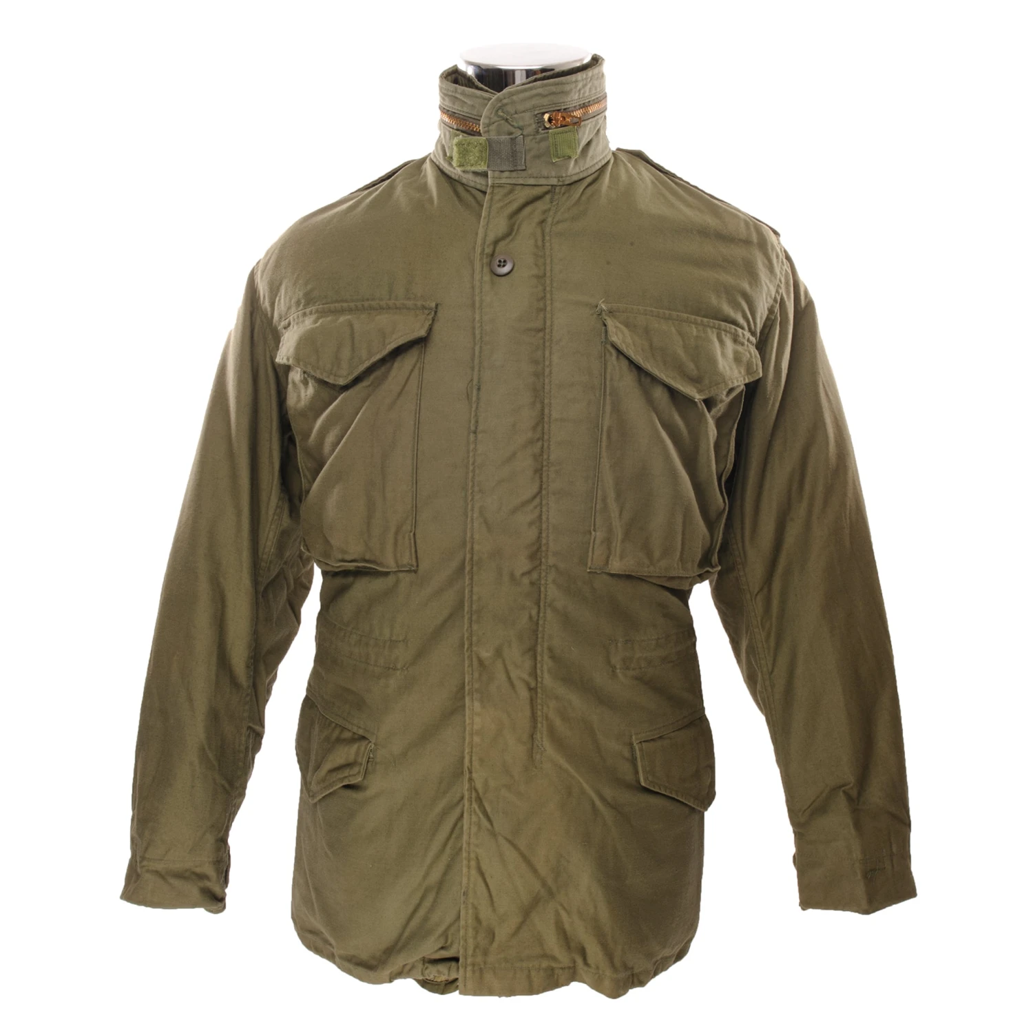 The hip length M1965 cold weather coat was made from OG-107 water repellent and wind resistant cotton-nylon sateen and had a zip front closure and Velcro cuff fasteners. The two bellows type chest pockets and two lower inside hanging pockets were closed by snap fasteners and the hood was zipped into the back of the coat’s rounded collar. Like its M1951 predecessor it had both waist and hem drawstrings and could be fitted with a detachable liner.