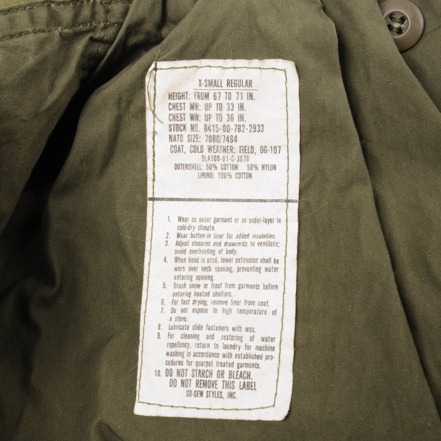 STOCK NO. 8415-00-782-2933