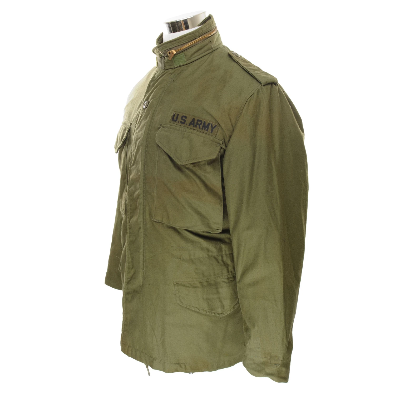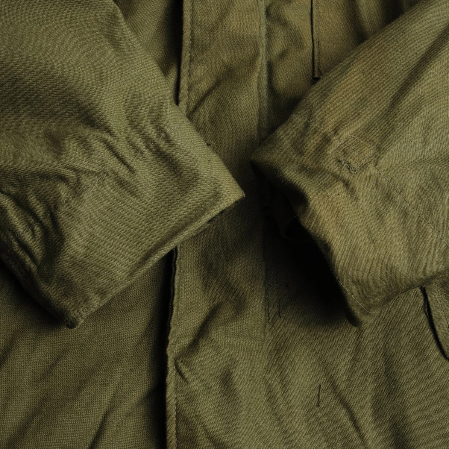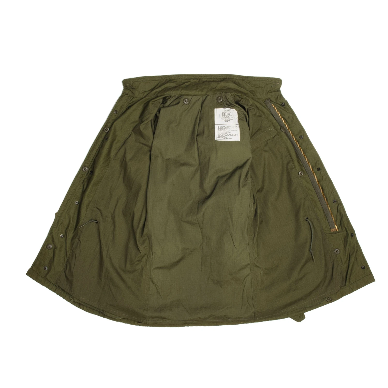 The hip length M1965 cold weather coat was made from OG-107 water repellent and wind resistant cotton-nylon sateen and had a zip front closure and Velcro cuff fasteners. The two bellows type chest pockets and two lower inside hanging pockets were closed by snap fasteners and the hood was zipped into the back of the coat’s rounded collar. Like its M1951 predecessor it had both waist and hem drawstrings and could be fitted with a detachable liner.