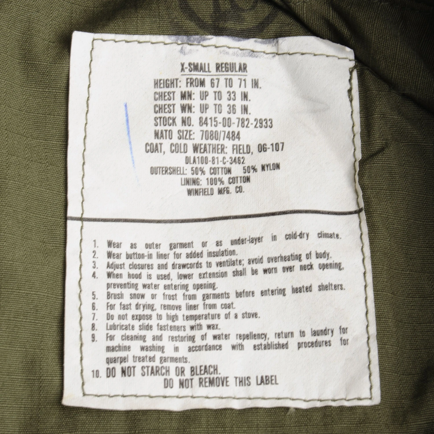 Us Army M-1965 M65 Field Jacket 1981 Size Xs Xsmall Regular Like New condition