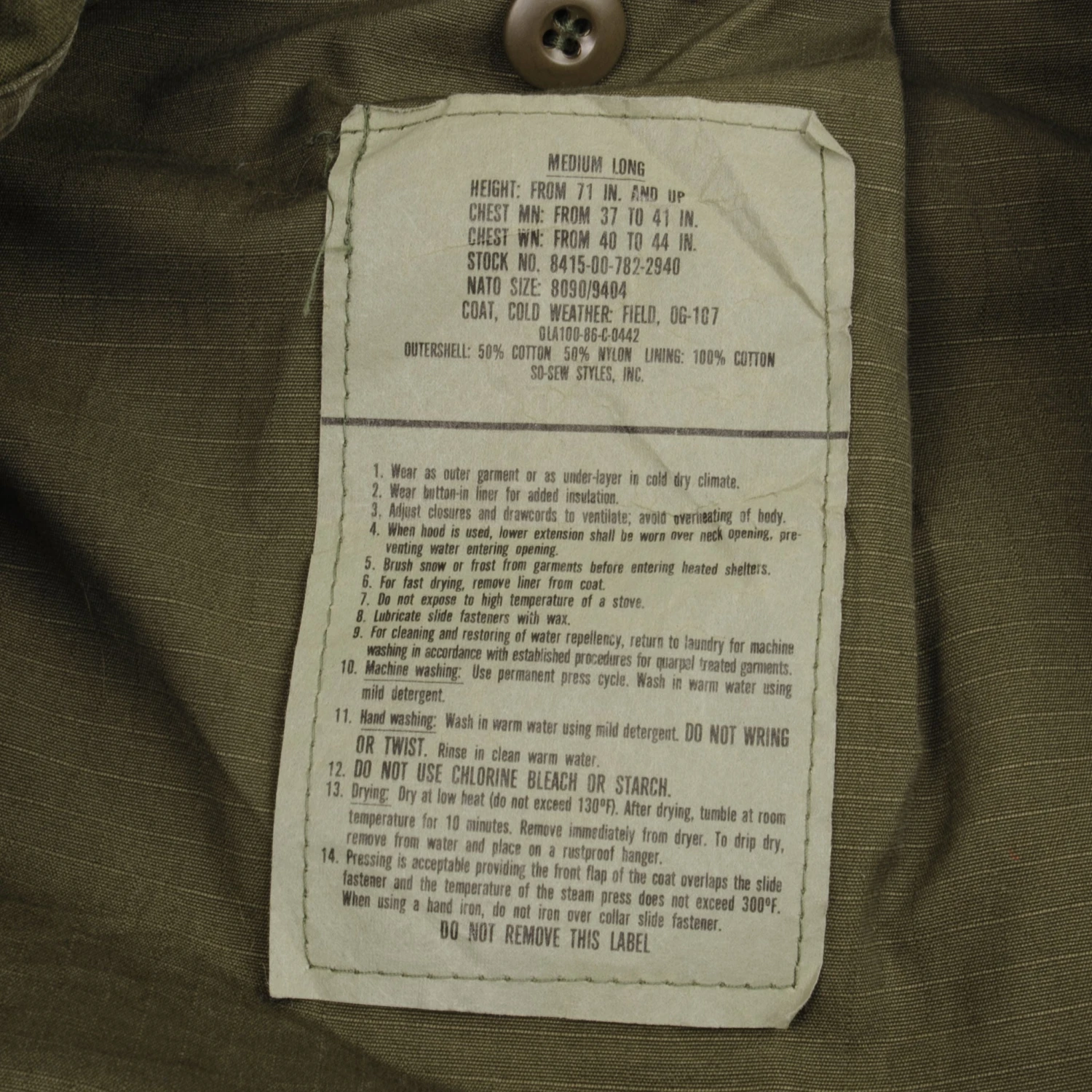 STOCK NO. 8415-00-782-2940