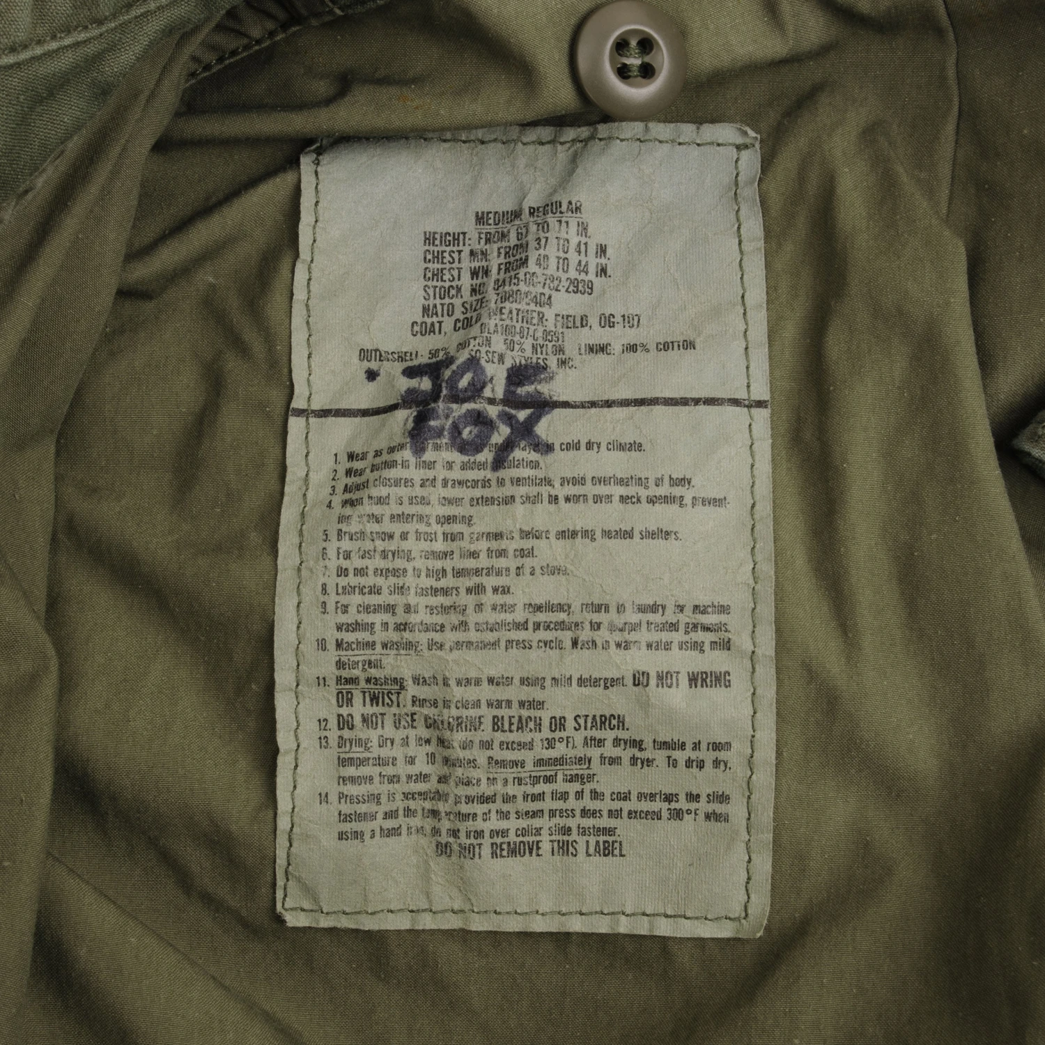 Vintage Us Army M-1965 M65 Field Jacket 1987 Size Medium Regular With Liner