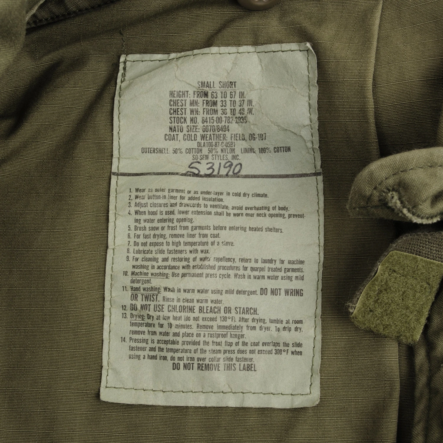 STOCK NO. 8415-00-782-2933