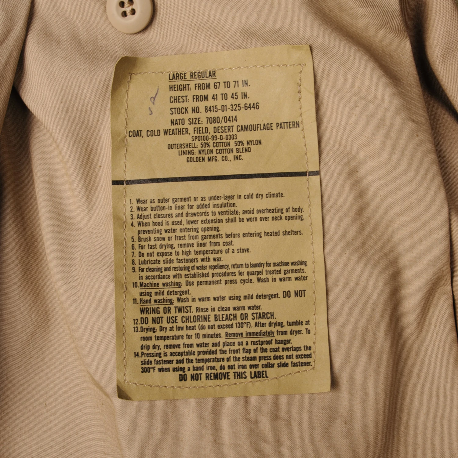 Vintage US Army M-1965 M65 Field Jacket Desert Camouflage 1999 Size Large Regular Deadstock.