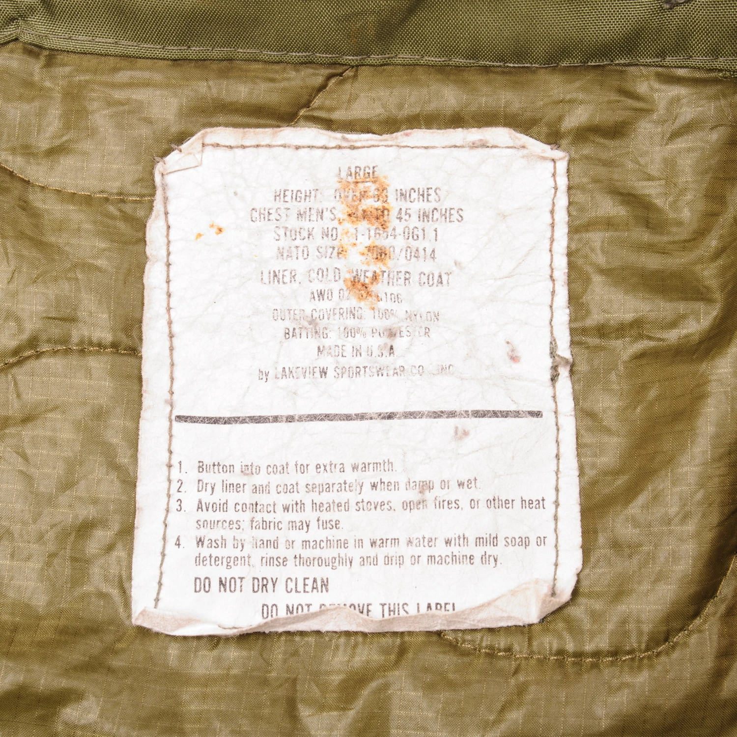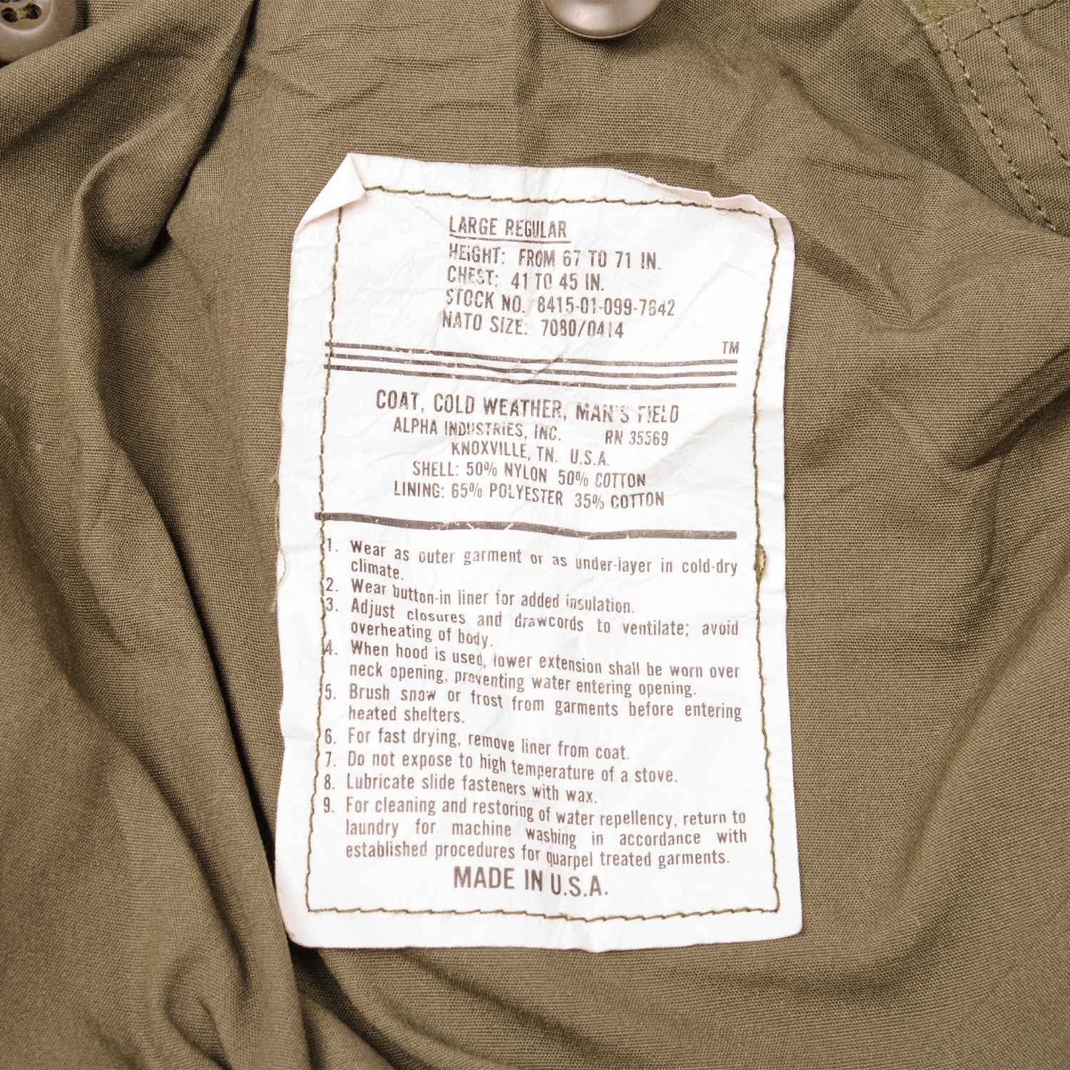 Vintage US Army M-1965 Field Jacket size Large Regular with Liner.