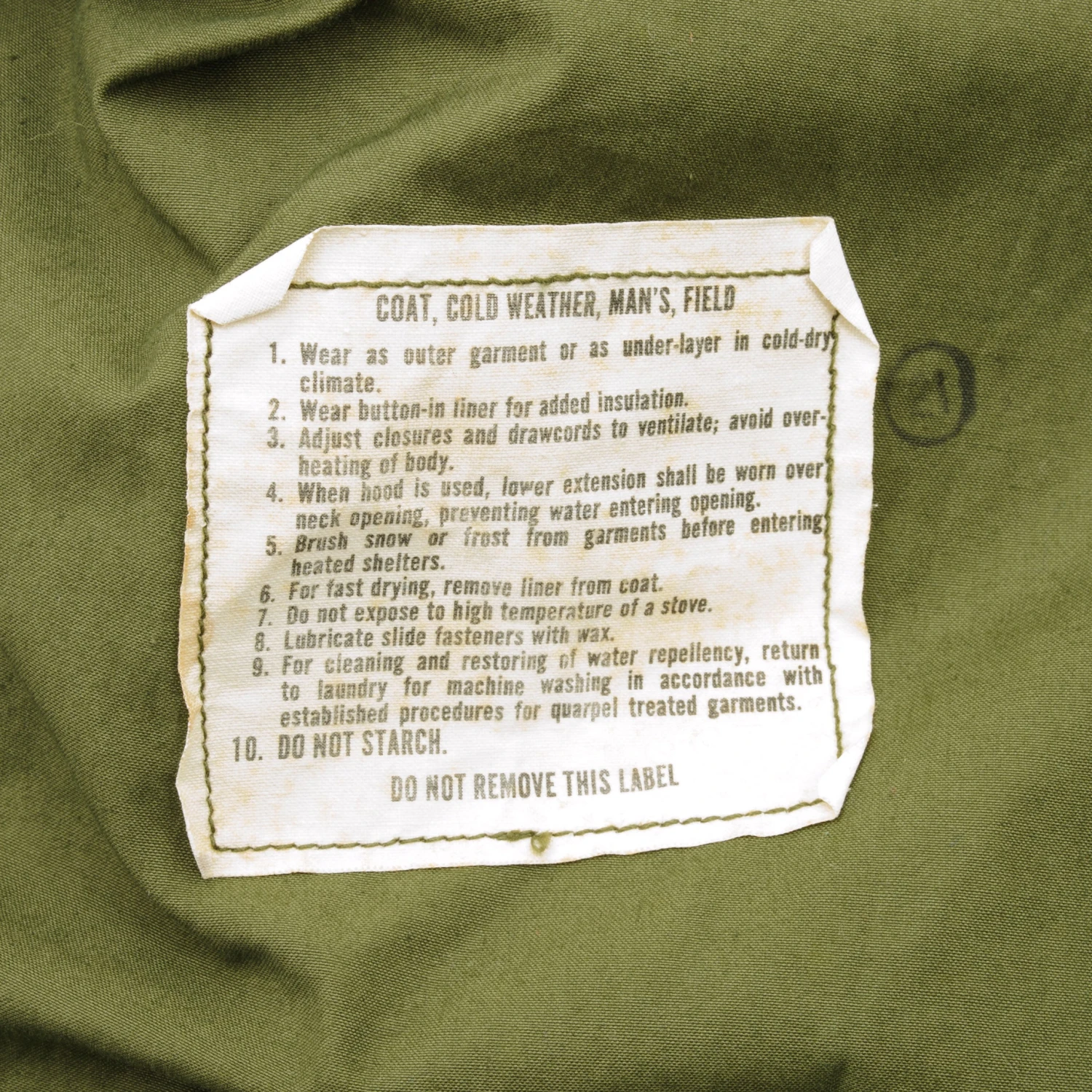 The M-1965 jacket was initially designed by Alpha Industries and was made from OG-107 (Olive Green Shade 107) water repellent and wind resistant cotton-nylon sateen. The fabrics was made by Burlington Fabrics.